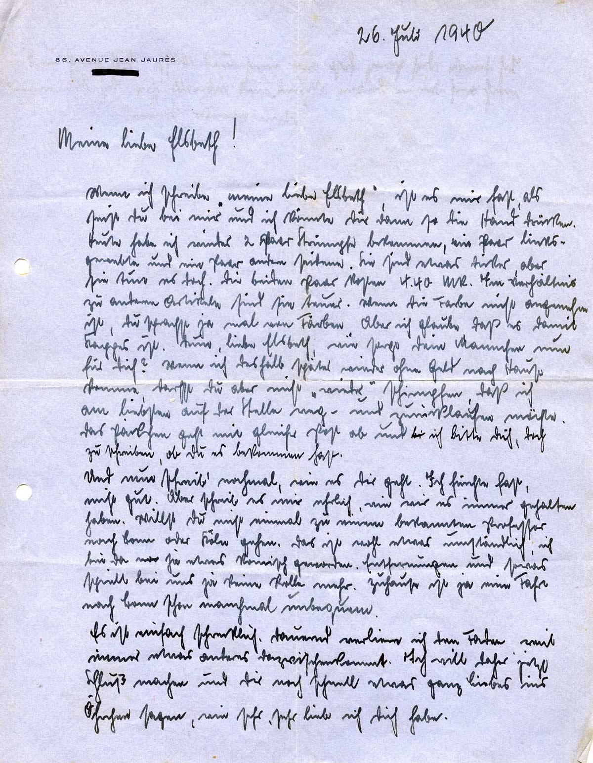 Johannes Ließem an seine Frau Elsbeth, 26. Juli 1940