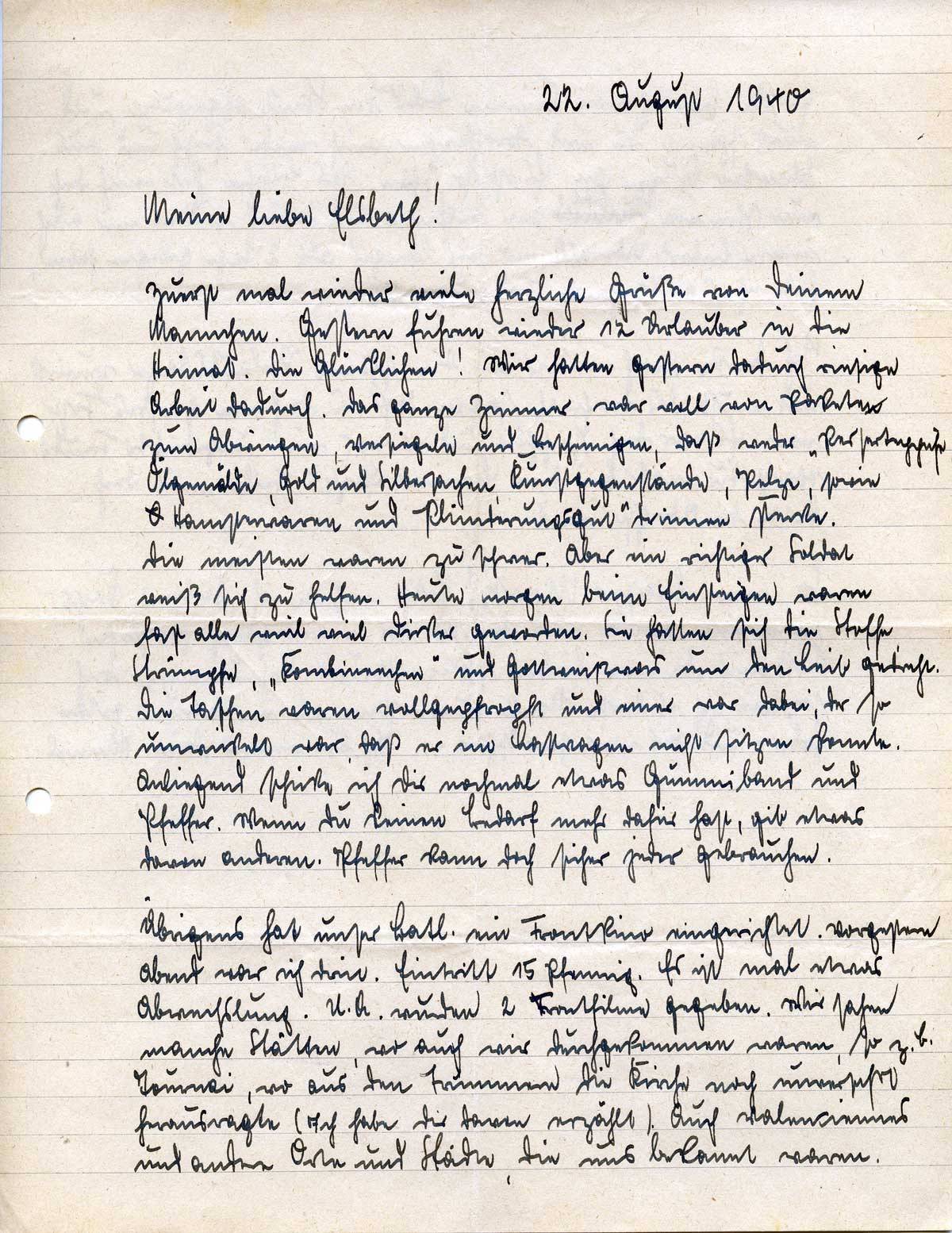 Johannes Ließem an seine Frau Elsbeth, 22. August 1940