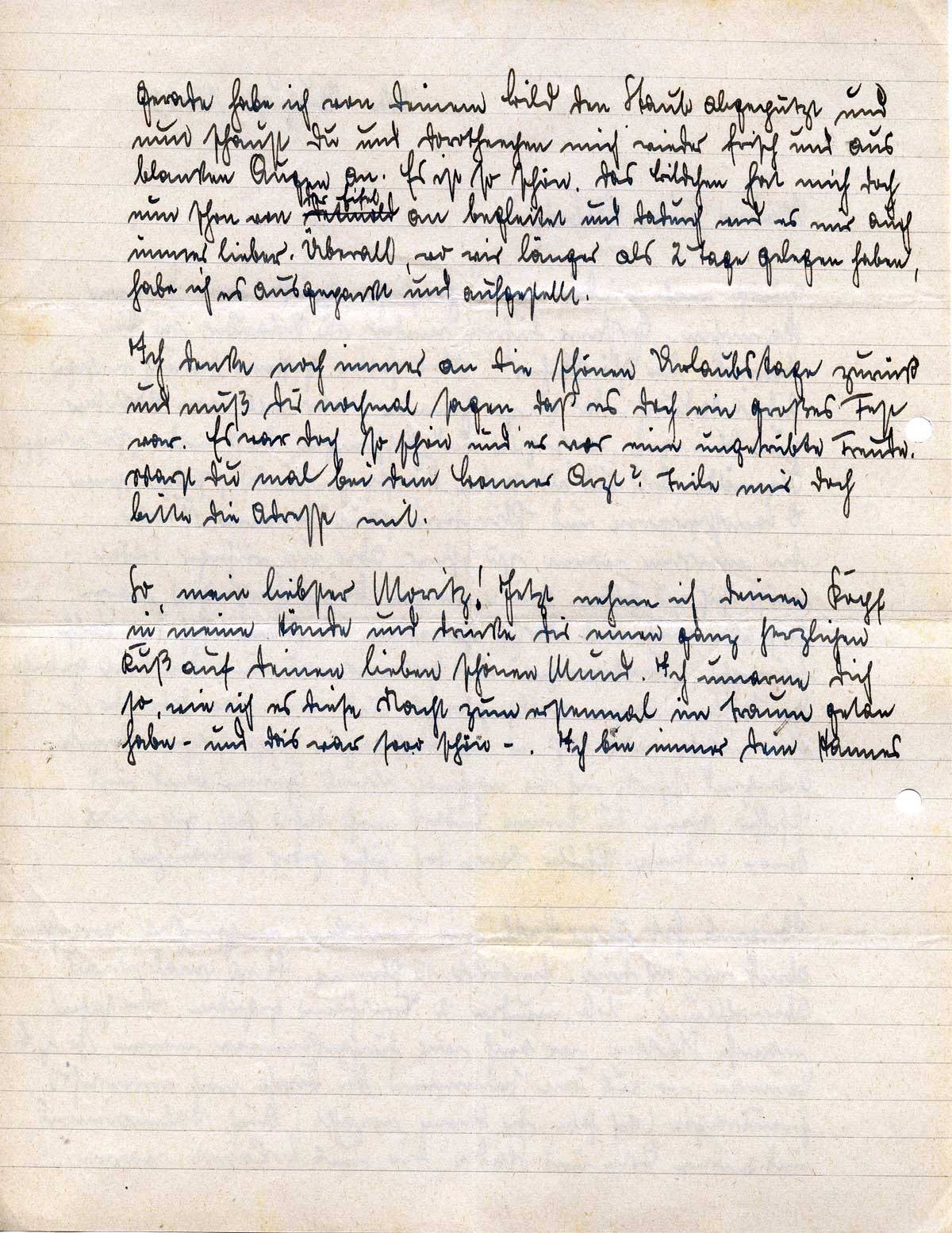 Zuerst mal wieder viele herzliche Grüße von Deinem Mannchen. Gestern fuhren wieder 12 Urlauber in die Heimat. Die Glücklichen! Wir hatten gestern dadurch riesige Arbeit. Das ganze Zimmer war voll von Paketen zum Abwiegen, Versiegeln und Bescheinigen, daß weder „Perserteppiche, Ölgemälde, Gold und Silbersachen, Kunstgegenstände, Pelze, sowie Hamsterwaren und Plünderungsgut“ drinnen stecke. Die meisten waren zu schwer. Aber ein richtiger Soldat weiß sich zu helfen. Heute morgen beim Einsteigen waren fast alle viel viel dicker geworden. Sie hatten sich die Stoffe, Strümpfe, „Kombineechen“ und Gottweißwas um den Leib gedreht. Die Taschen waren vollgepfropft und einer war dabei, der so umwickelt war, daß er im Lastwagen nicht sitzen konnte. Anliegend schicke ich Dir nochmal etwas Gummiband und Pfeffer. Wenn Du keinen Bedarf mehr dafür hast, gib etwas davon anderen. Pfeffer kann doch sicher jeder gebrauchen.