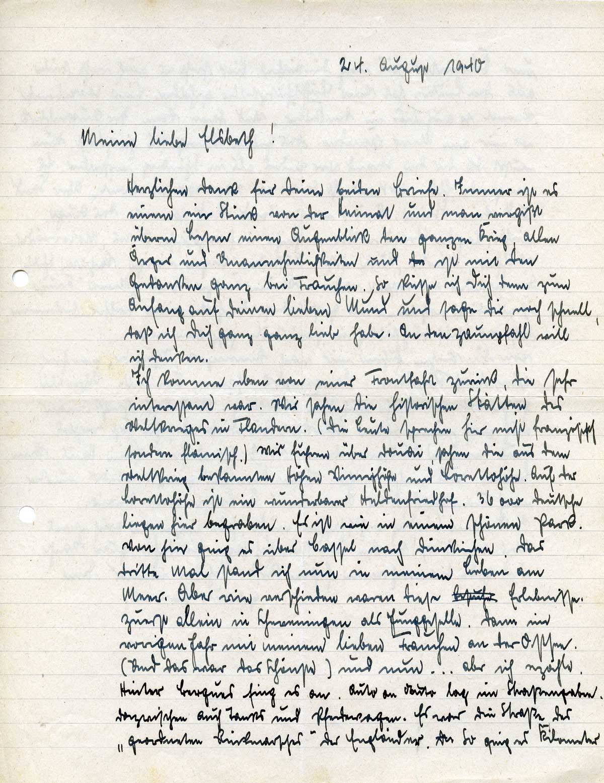 Johannes Ließem an seine Frau Elsbeth, 24. August 1940