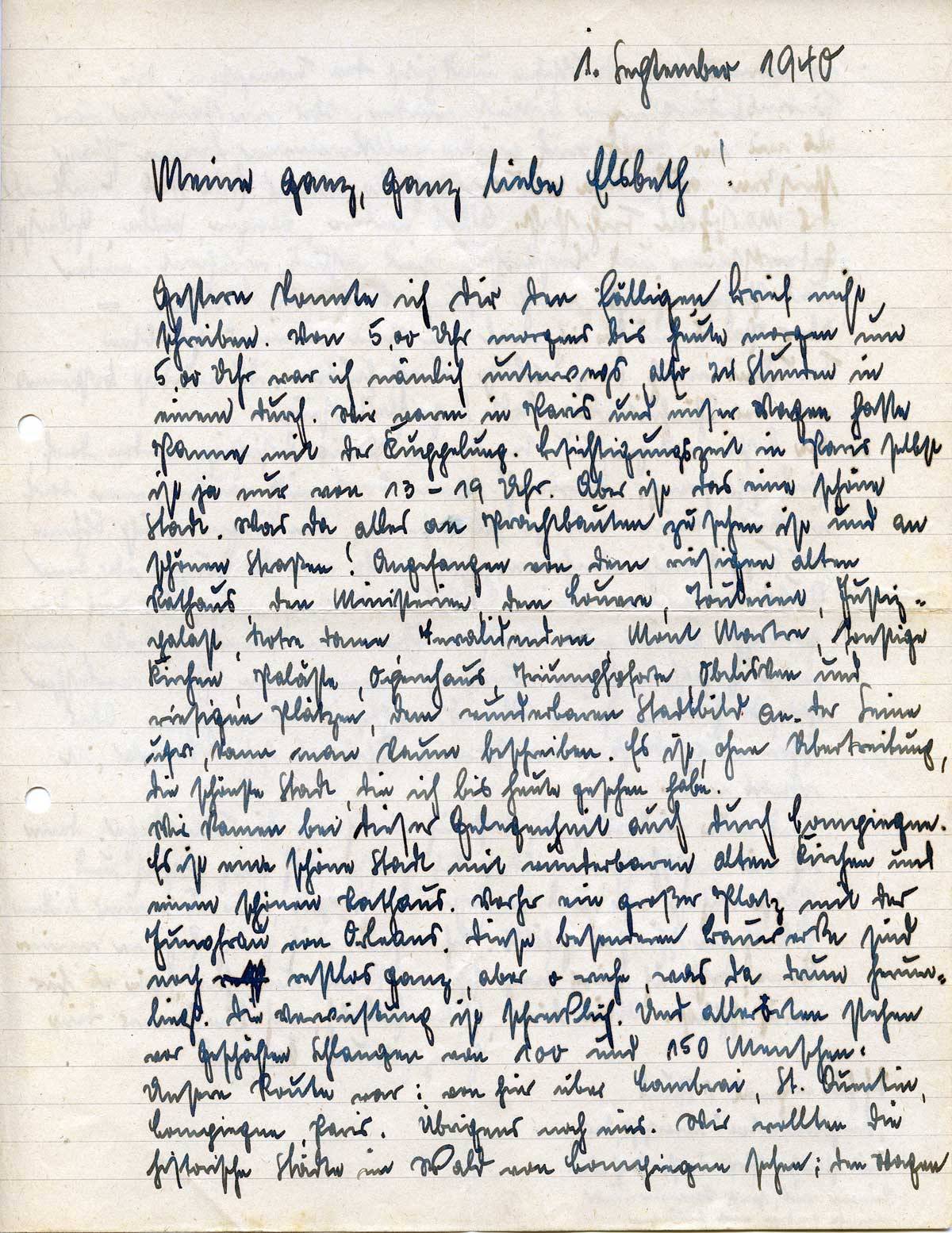 Johannes Ließem an seine Frau Elsbeth, 1. September 1940