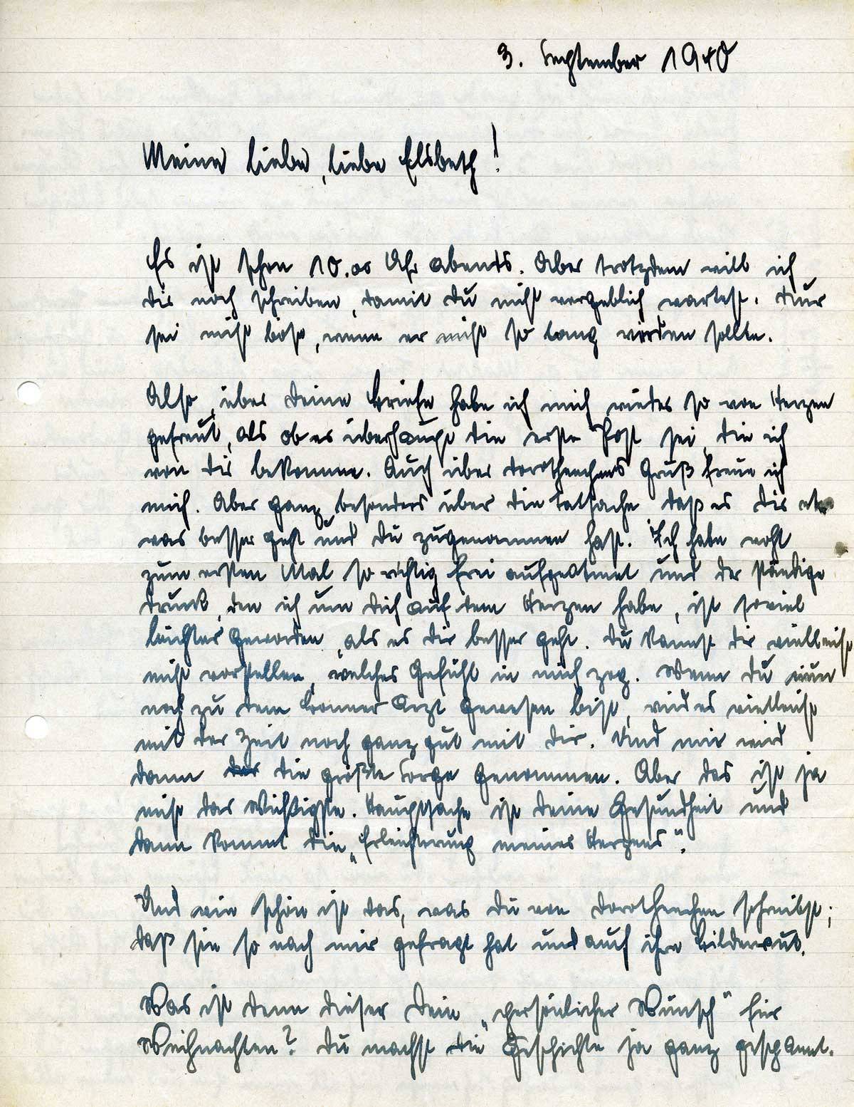 Johannes Ließem an seine Frau Elsbeth, 3. September 1940