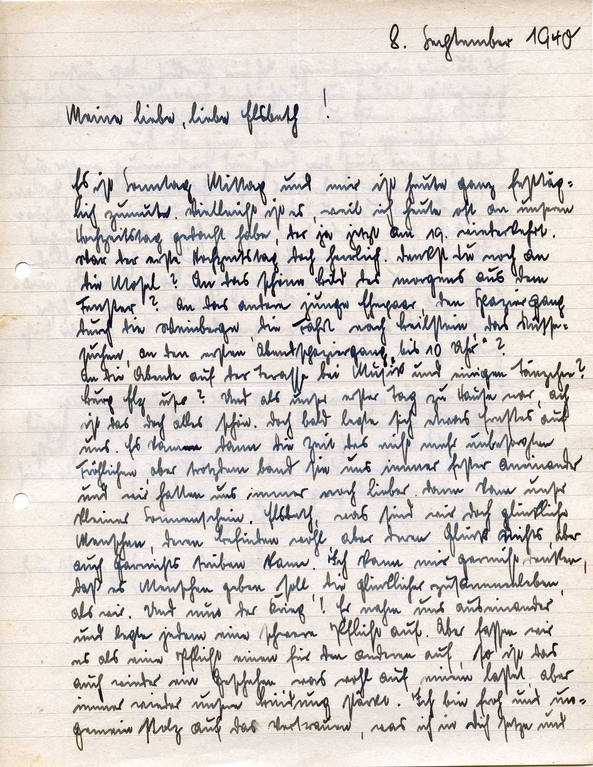 Johannes Ließem an seine Frau Elsbeth, 8. September 1940