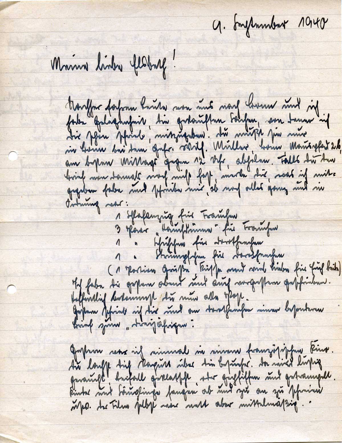 Johannes Ließem an seine Frau Elsbeth, 9. September 1940