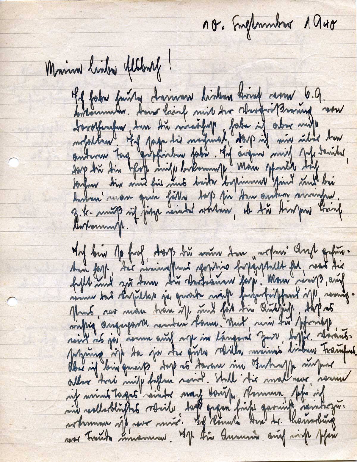 Johannes Ließem an seine Frau Elsbeth, 10. September 1940