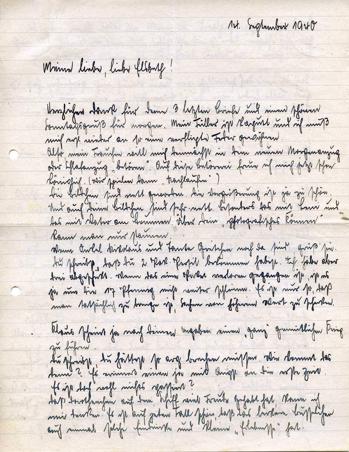 Johannes Ließem an seine Frau Elsbeth, 14. September 1940