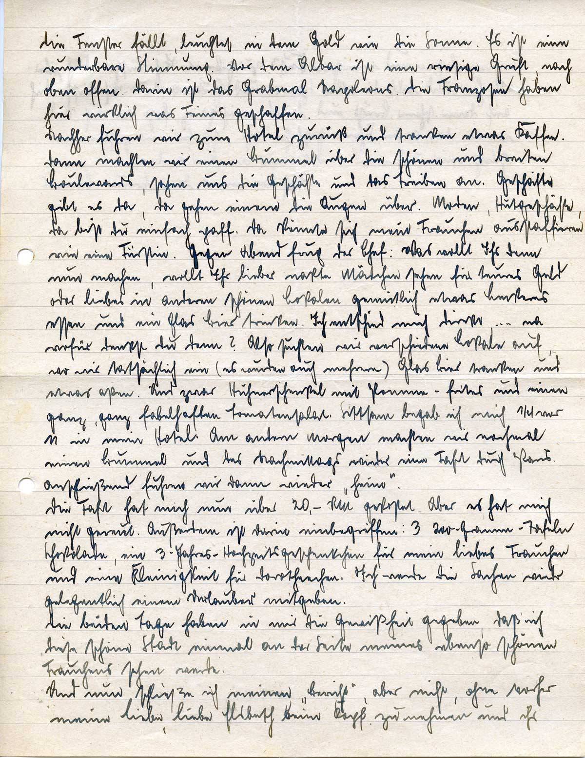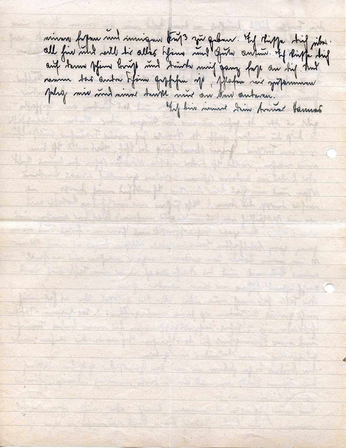 einen festen und innigen Kuß zu geben. Ich küsse Dich überall hin und will Dir alles Schöne und Gute antun. Ich küsse Dich auf Deine schöne Brust und drücke mich ganz fest an Dich. Und wenn das andre Schöne geschehen ist, schlafen wir zusammen selig ein und einer denkt nur an den anderen.