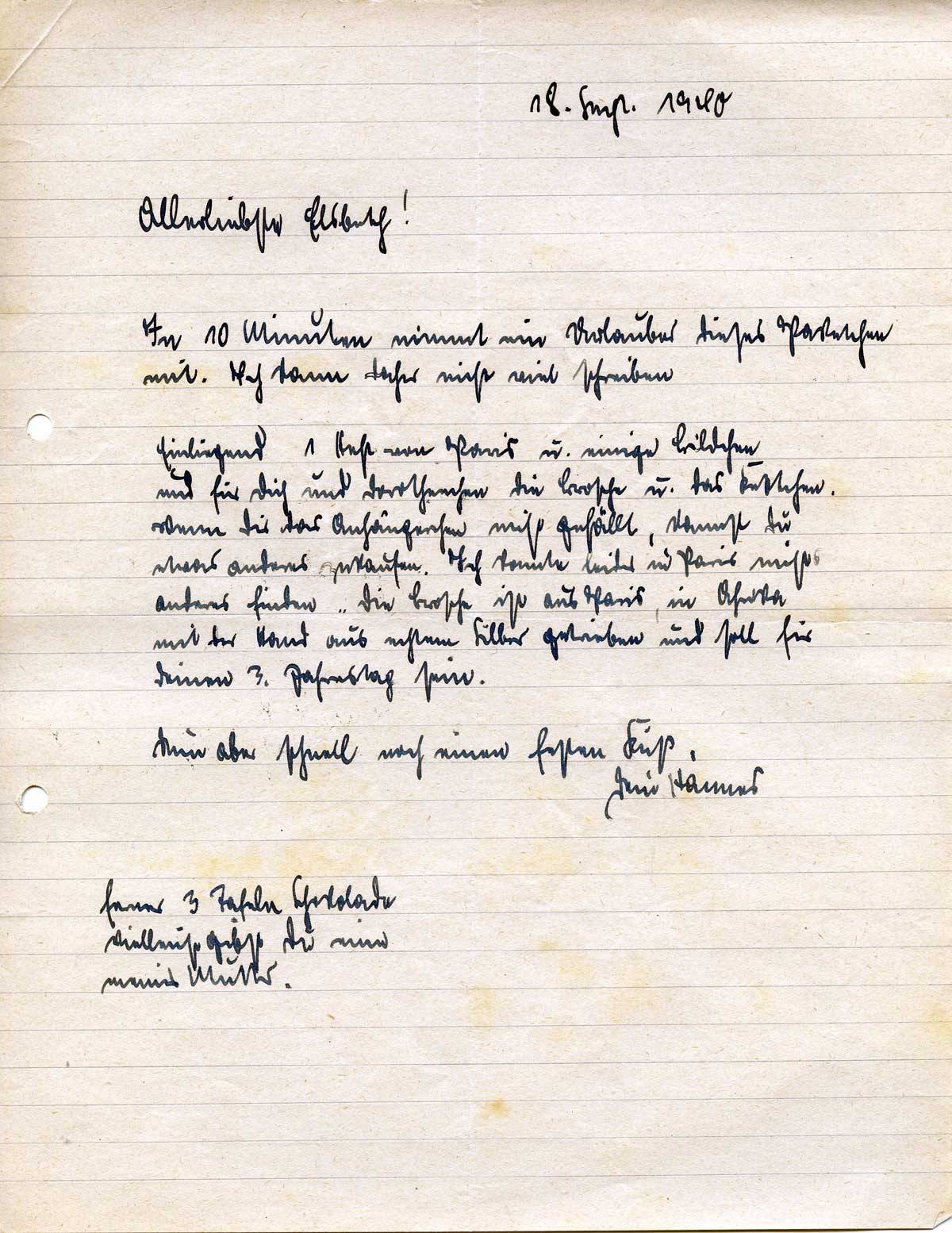 Johannes Ließem an seine Frau Elsbeth, 18. September 1940