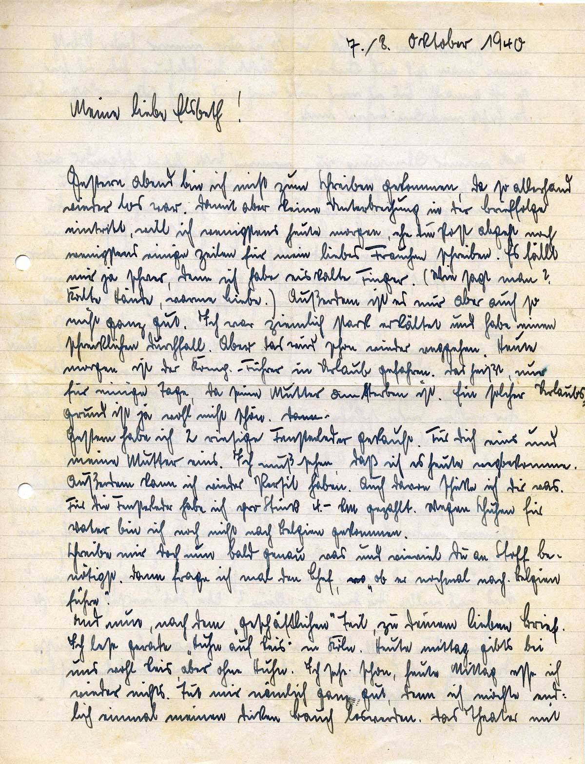 Johannes Ließem an seine Frau Elsbeth, 7./8. Oktober 1940