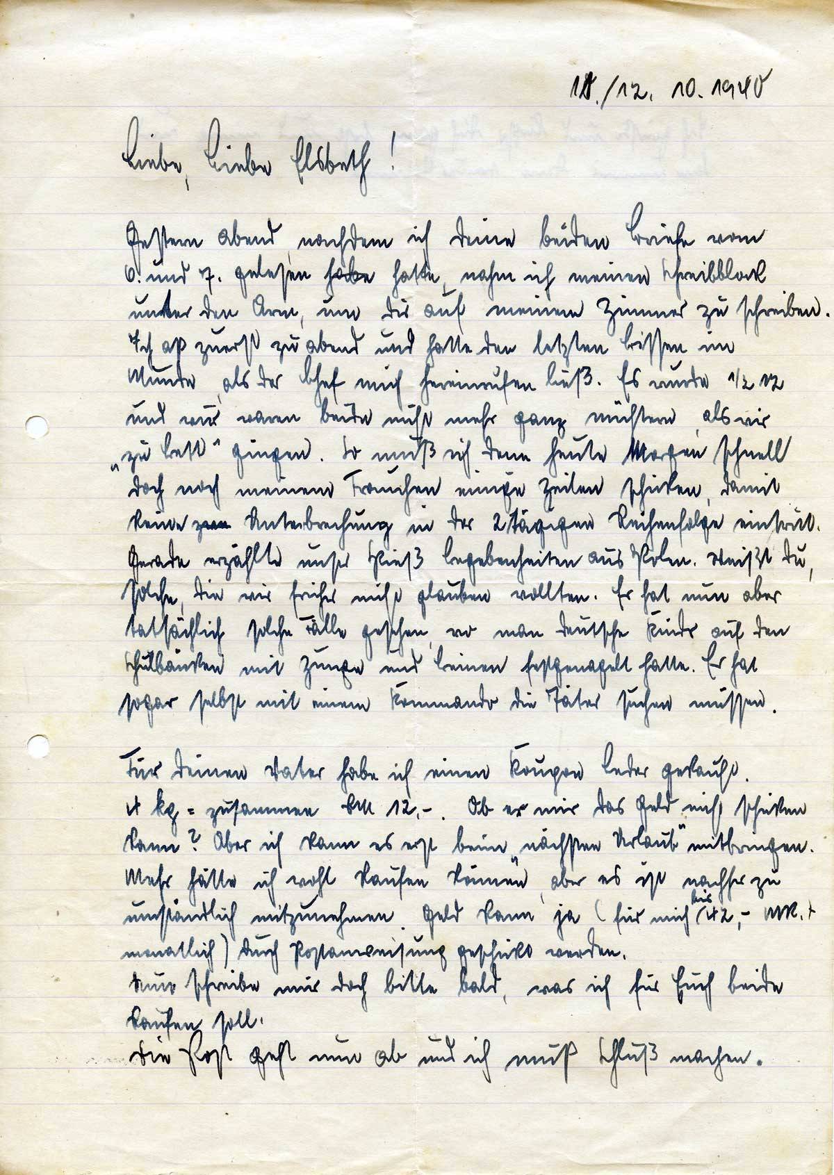 Johannes Ließem an seine Frau Elsbeth, 11./12. Oktober 1940