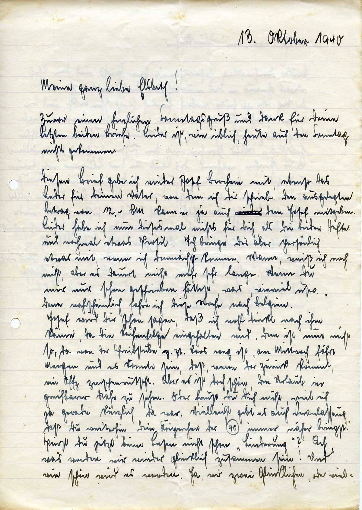 Johannes Ließem an seine Frau Elsbeth, 13. Oktober 1940