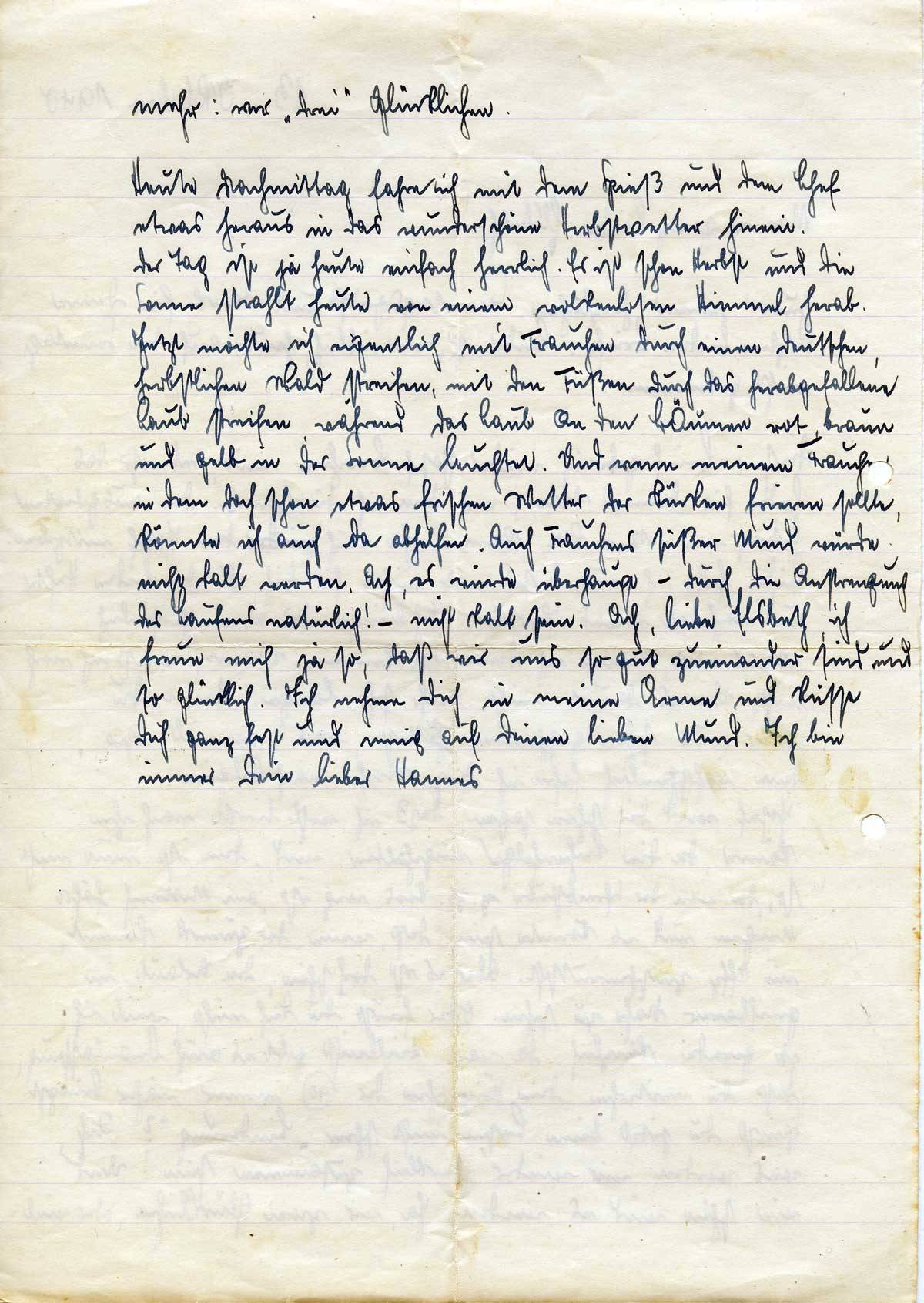 Zuvor einen herzlichen Sonntagsgruß und Dank für Deine letzten beiden Briefe. Leider ist, wie üblich, heute auf den Sonntag nichts gekommen.