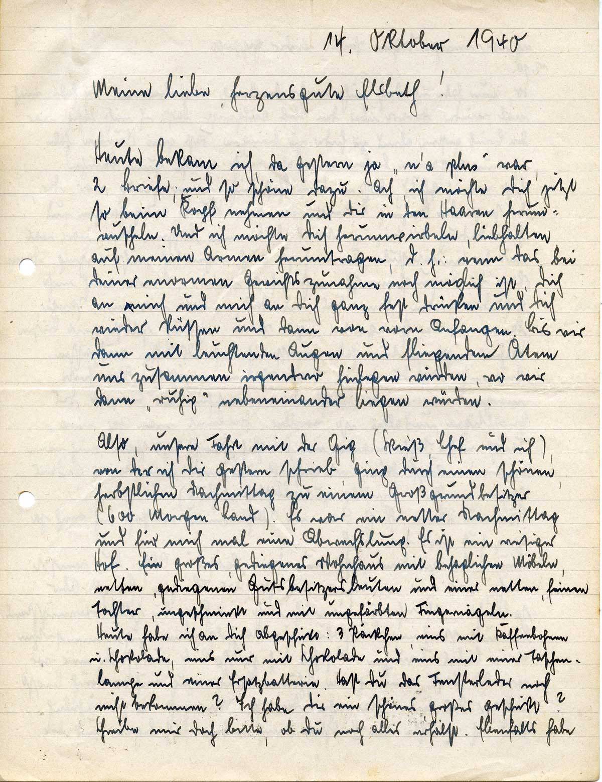 Johannes Ließem an seine Frau Elsbeth, 14. Oktober 1940