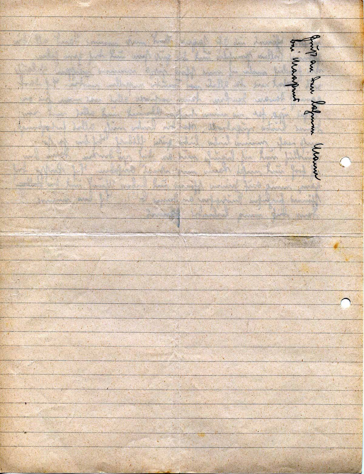 Heute bekam ich, da gestern ja „n'a plus“ war, 2 Briefe; und so schöne dazu. Ach, ich möchte Dich jetzt so beim Kopf nehmen und Dir in den Haaren herumwuscheln. Und ich möchte Dich herumwirbeln, liebhalten, auf meinen Armen herumtragen, d. h. wenn das bei Deiner enormen Gewichtszunahme noch möglich ist, Dich an mich und mich an Dich ganz fest drücken und Dich wieder küssen und dann von vorn anfangen. Bis wir dann mit leuchtenden Augen und fliegendem Atem uns zusammen irgendwo hinlegen würden, wo wir dann „ruhig“ nebeneinander liegen würden.