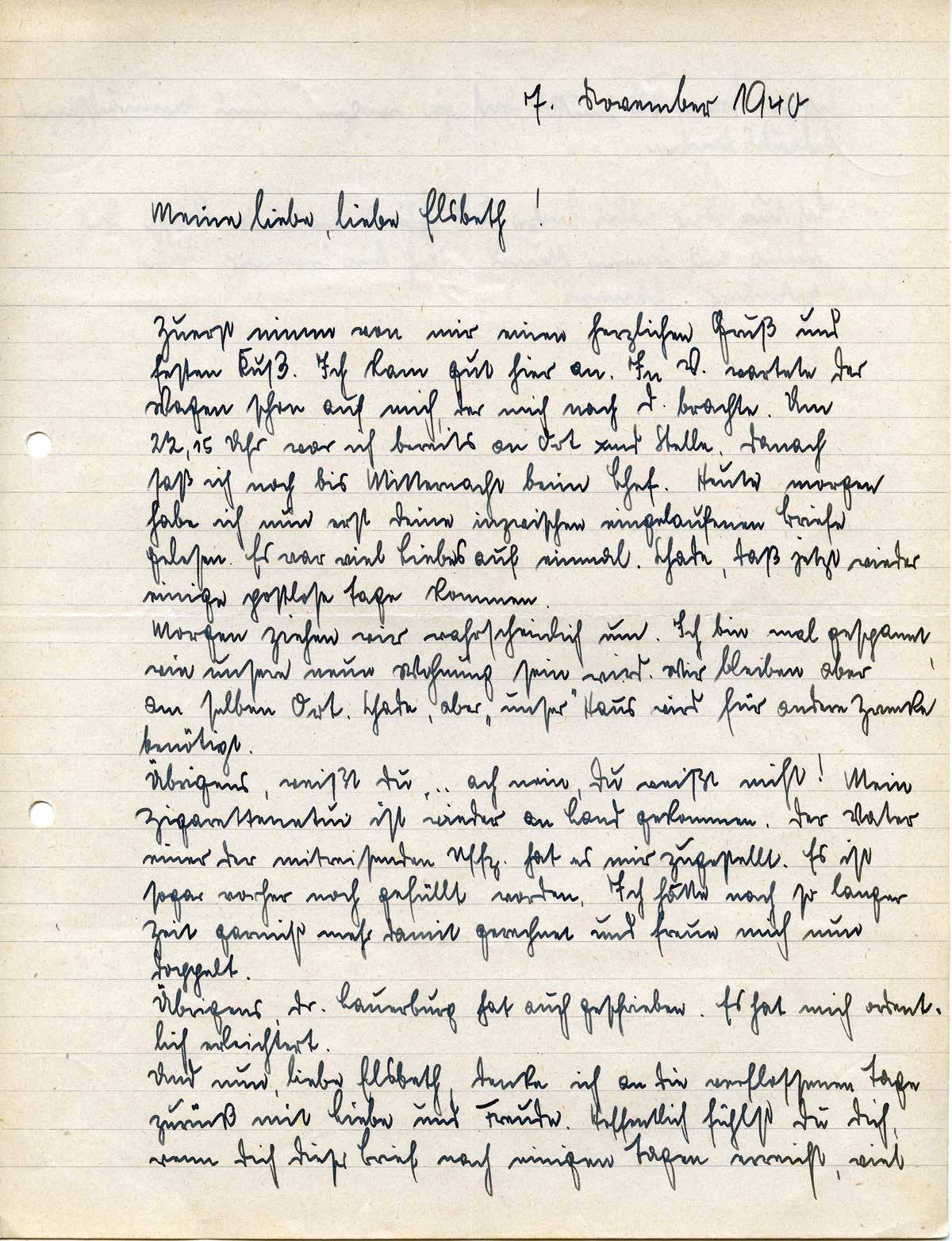 Johannes Ließem an seine Frau Elsbeth, 7. November 1940