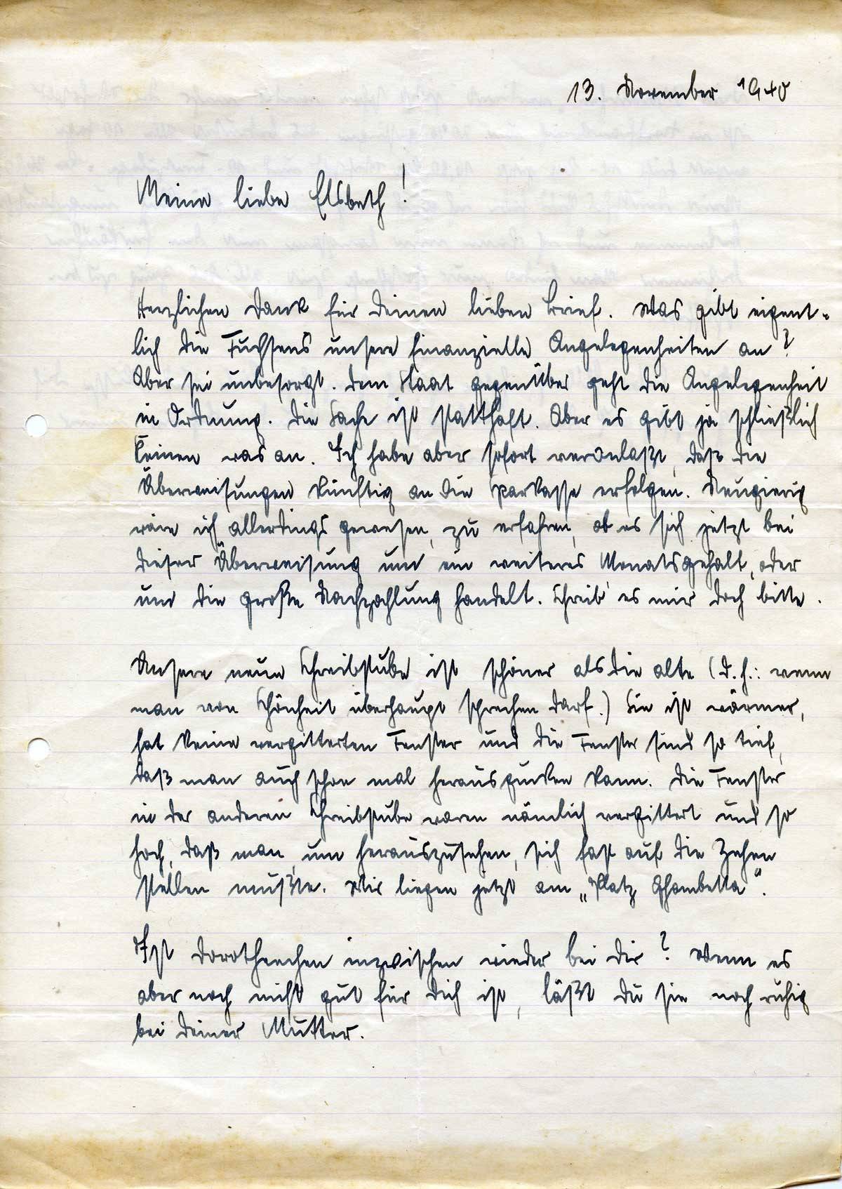 Johannes Ließem an seine Frau Elsbeth, 13. November 1940