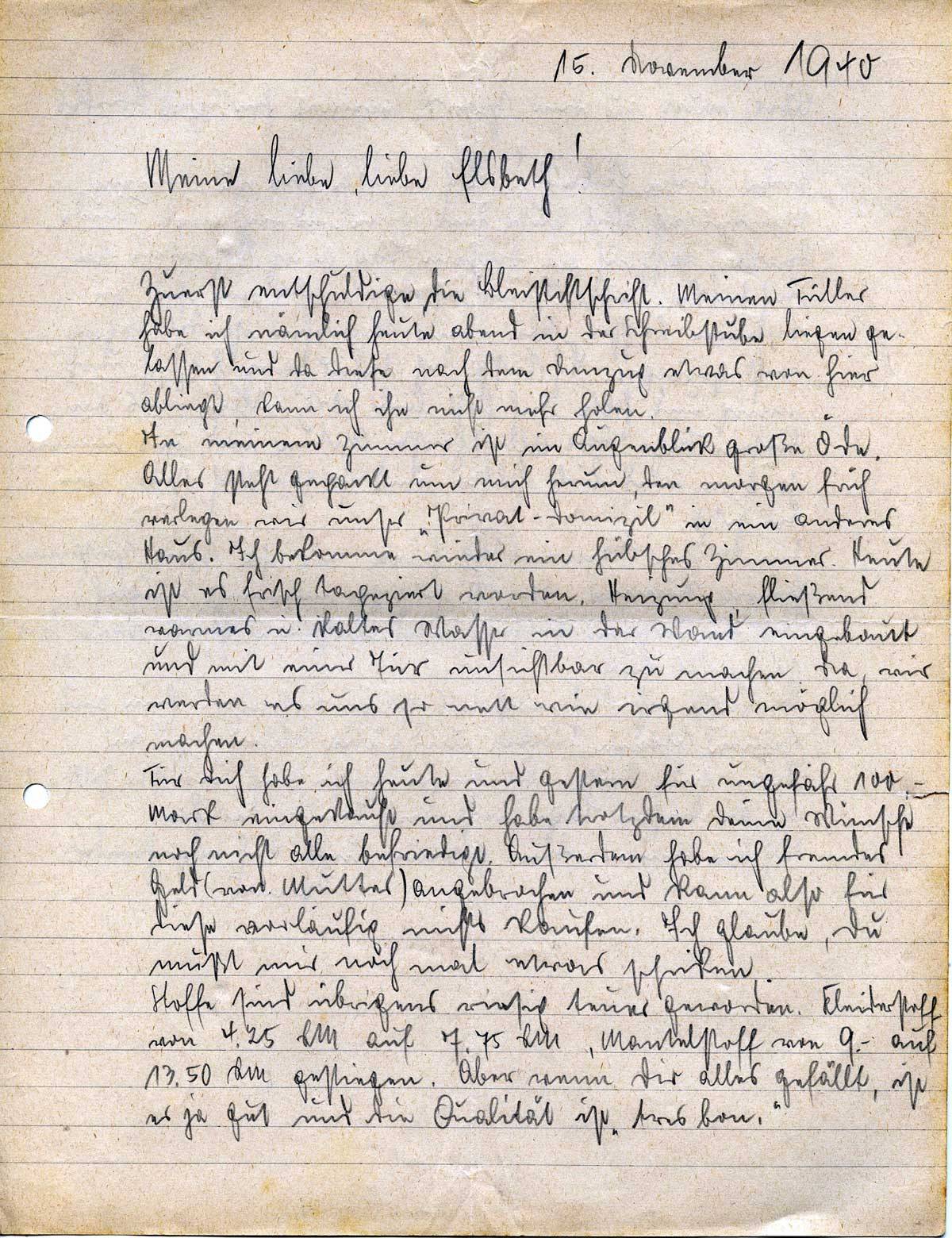 Johannes Ließem an seine Frau Elsbeth, 15. November 1940