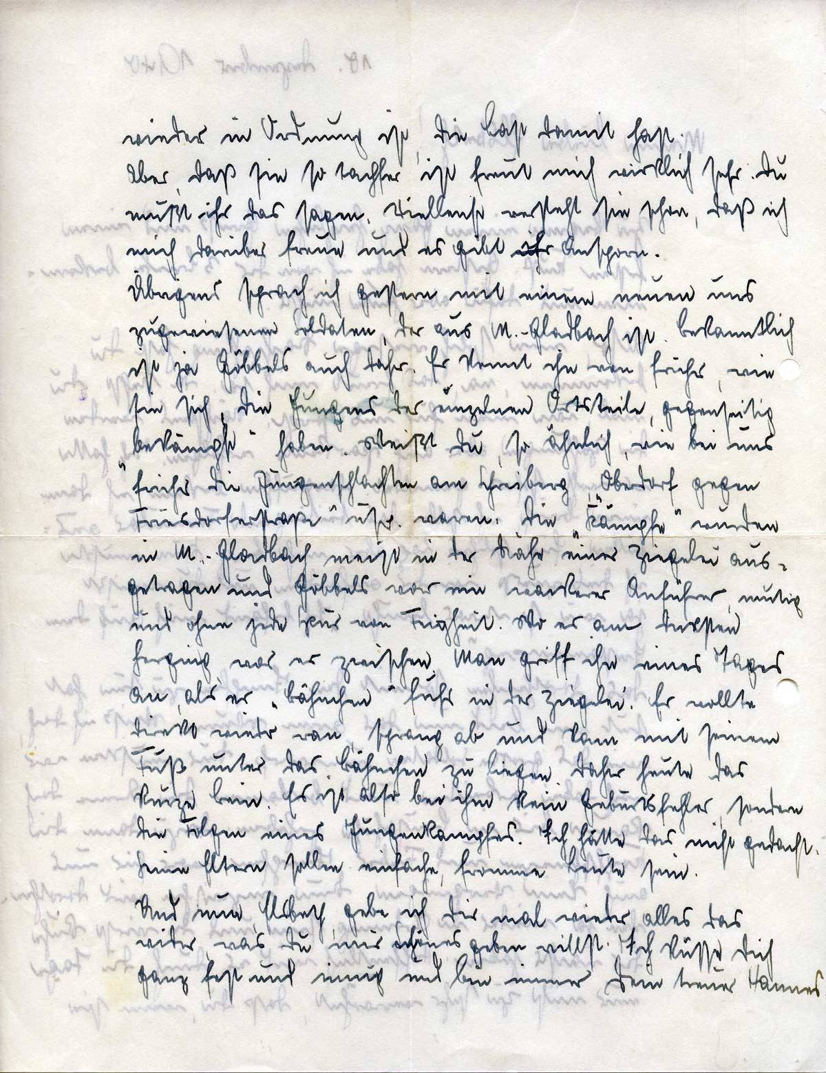 Zu Beginn einen ganz herzlichen Gruß und einen festen Kuß. Gestern habe ich von Dir 3 Briefe bekommen und dafür aber heute nichts.