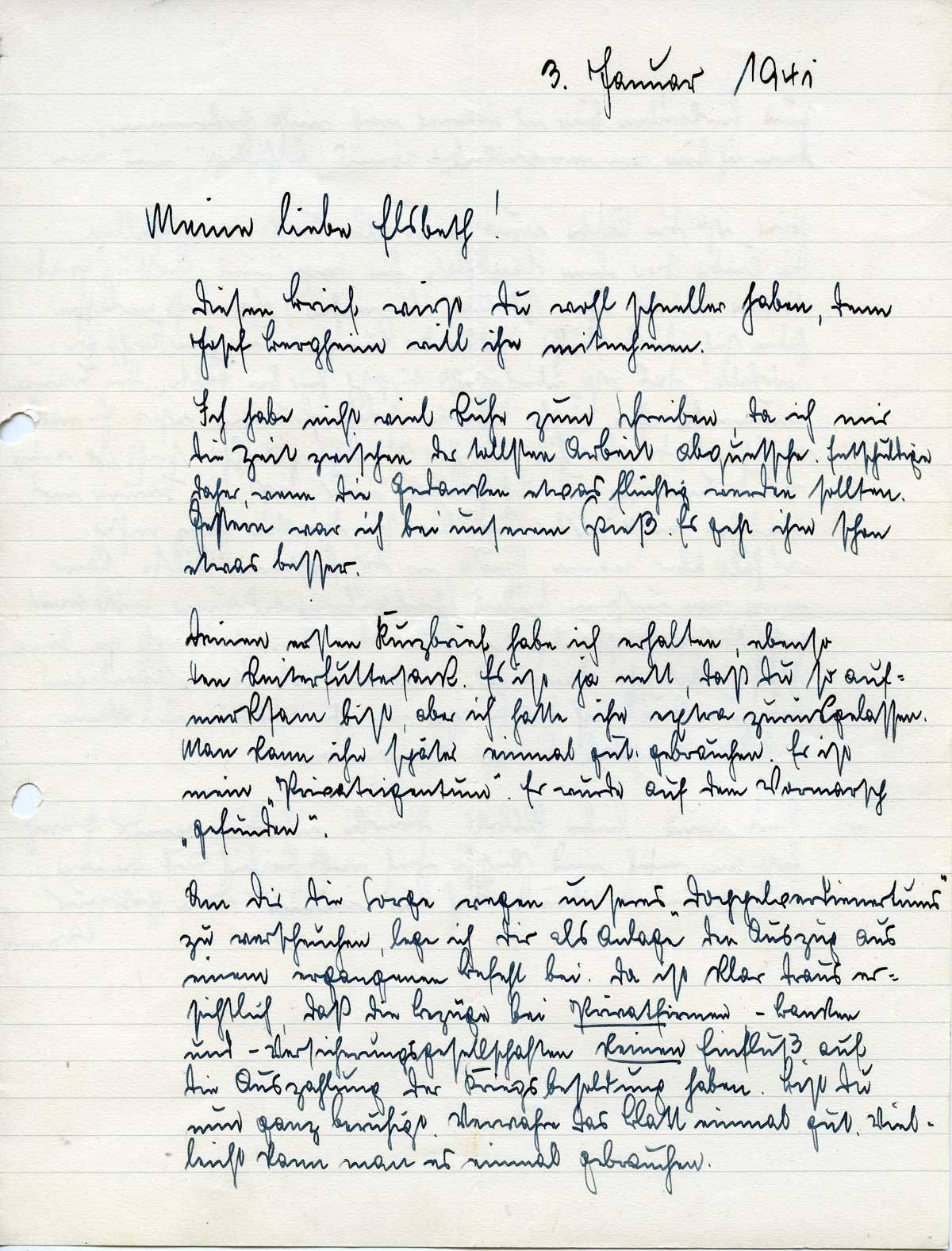 Johannes Ließem an seine Frau Elsbeth, 3. Januar 1941