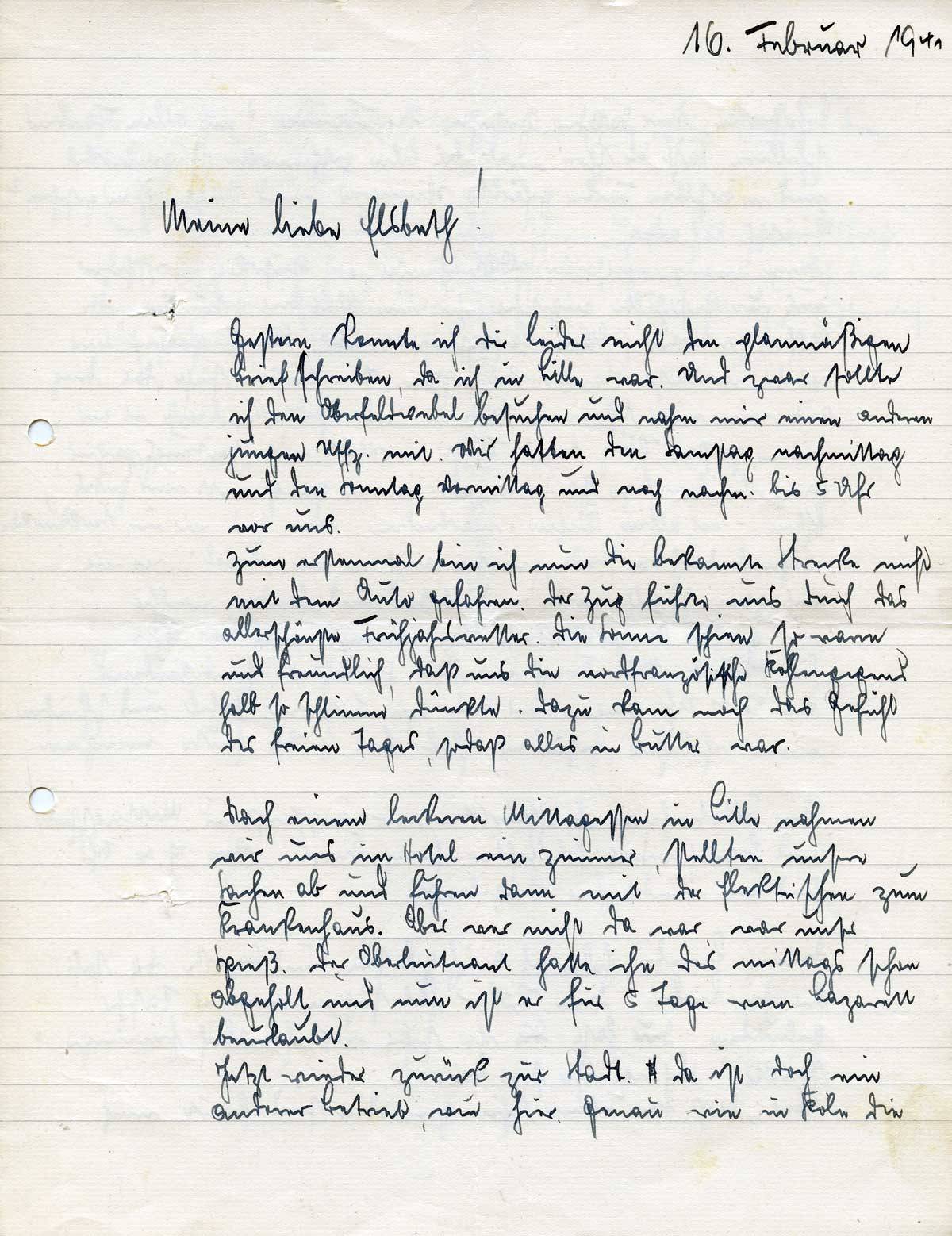 Johannes Ließem an seine Frau Elsbeth, 16. Februar 1941