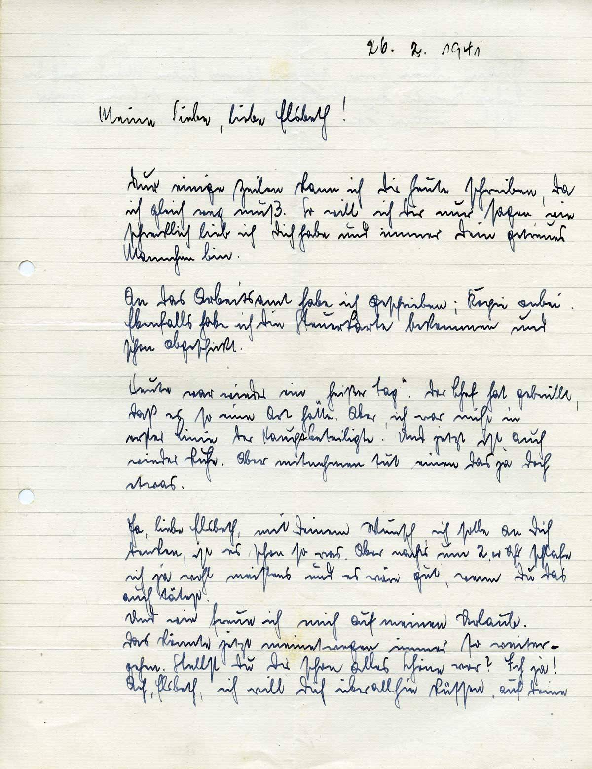 Johannes Ließem an seine Frau Elsbeth, 26. Februar 1941