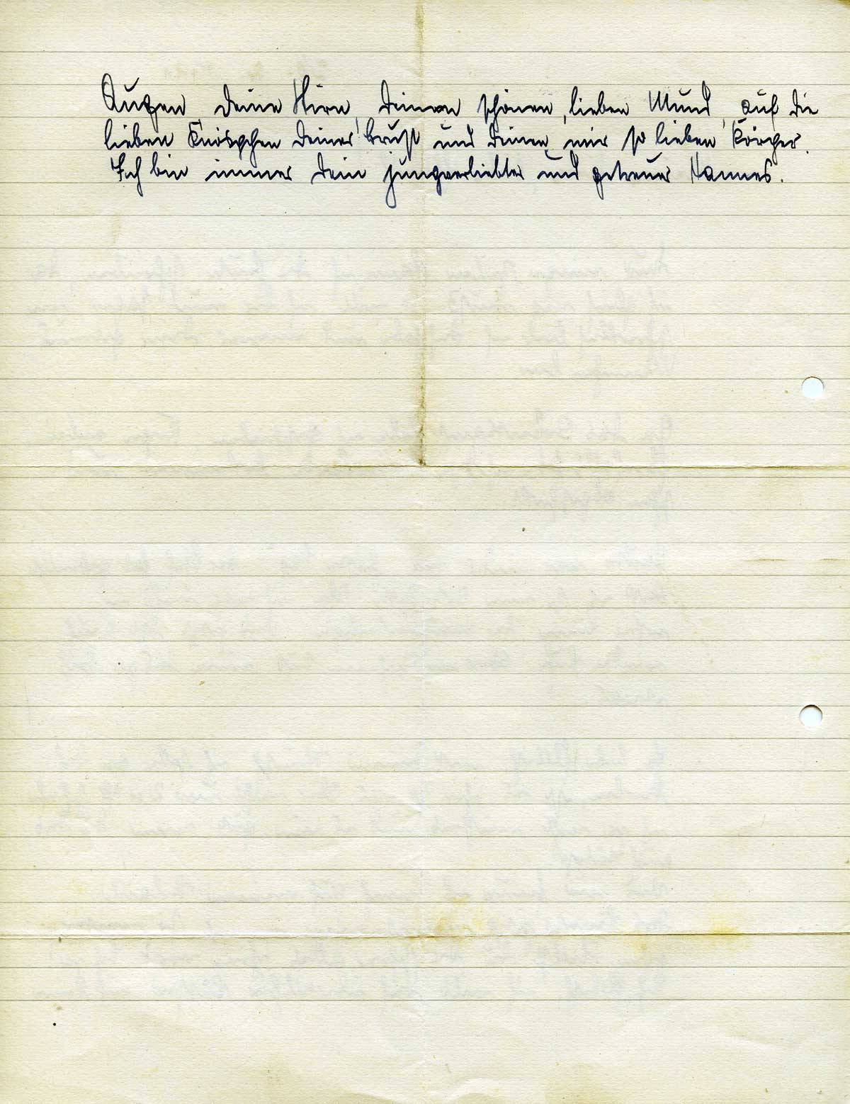 Nur einige Zeilen kann ich Dir heute schreiben, da ich gleich weg muß. So will ich Dir nur sagen, wie schrecklich lieb ich Dich habe und immer Dein getreues Mannchen bin.