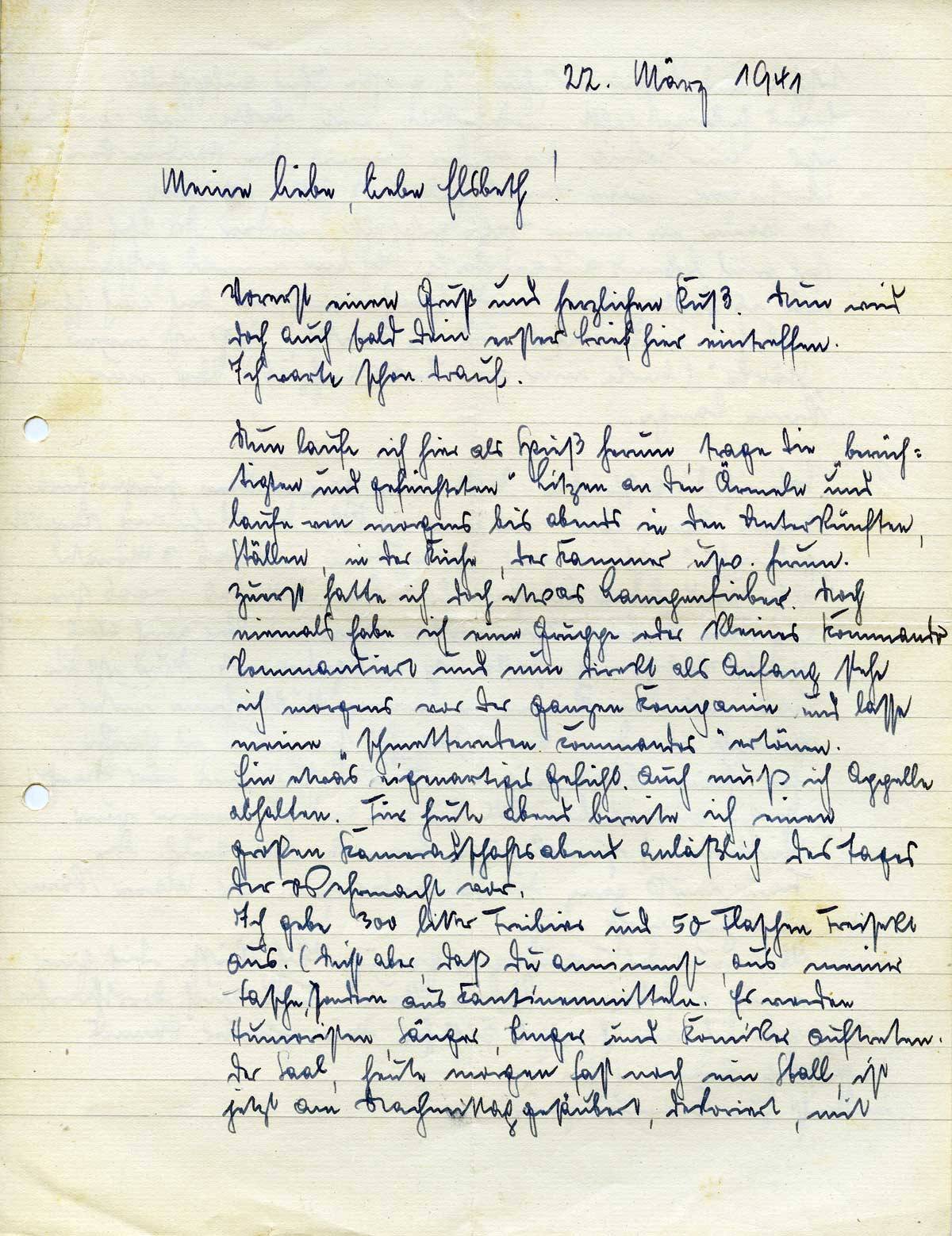 Johannes Ließem an seine Frau Elsbeth, 22. März 1941