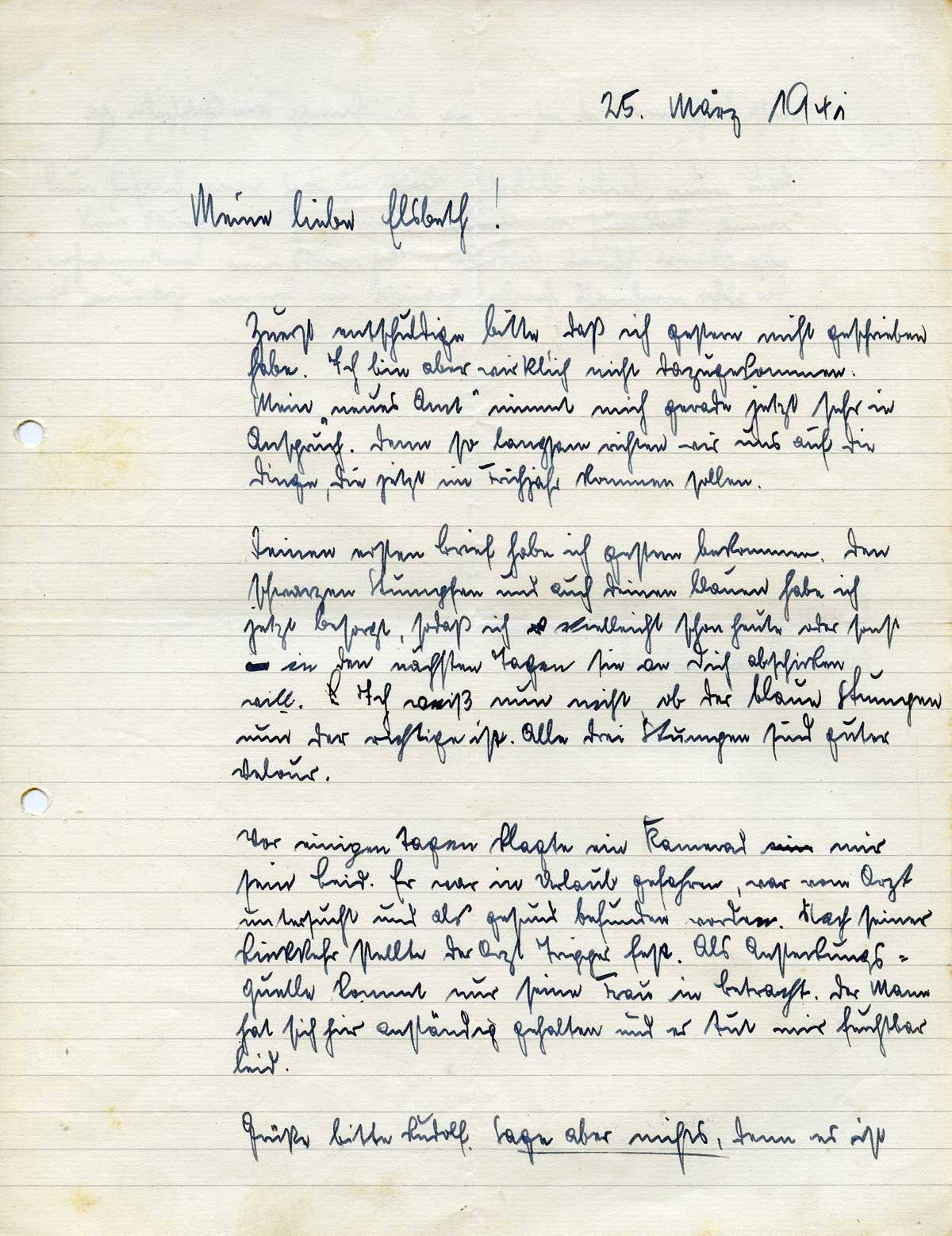 Johannes Ließem an seine Frau Elsbeth, 25. März 1941