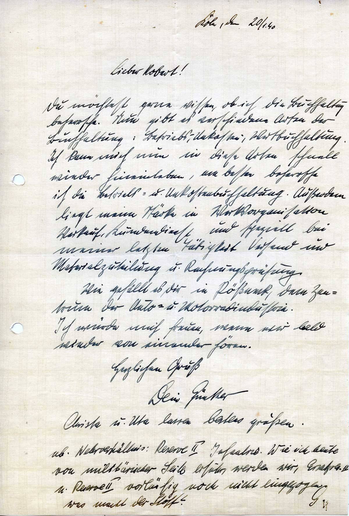 Günther Lehmacher an Schwager Robert Weichelt, 20. Januar 1940