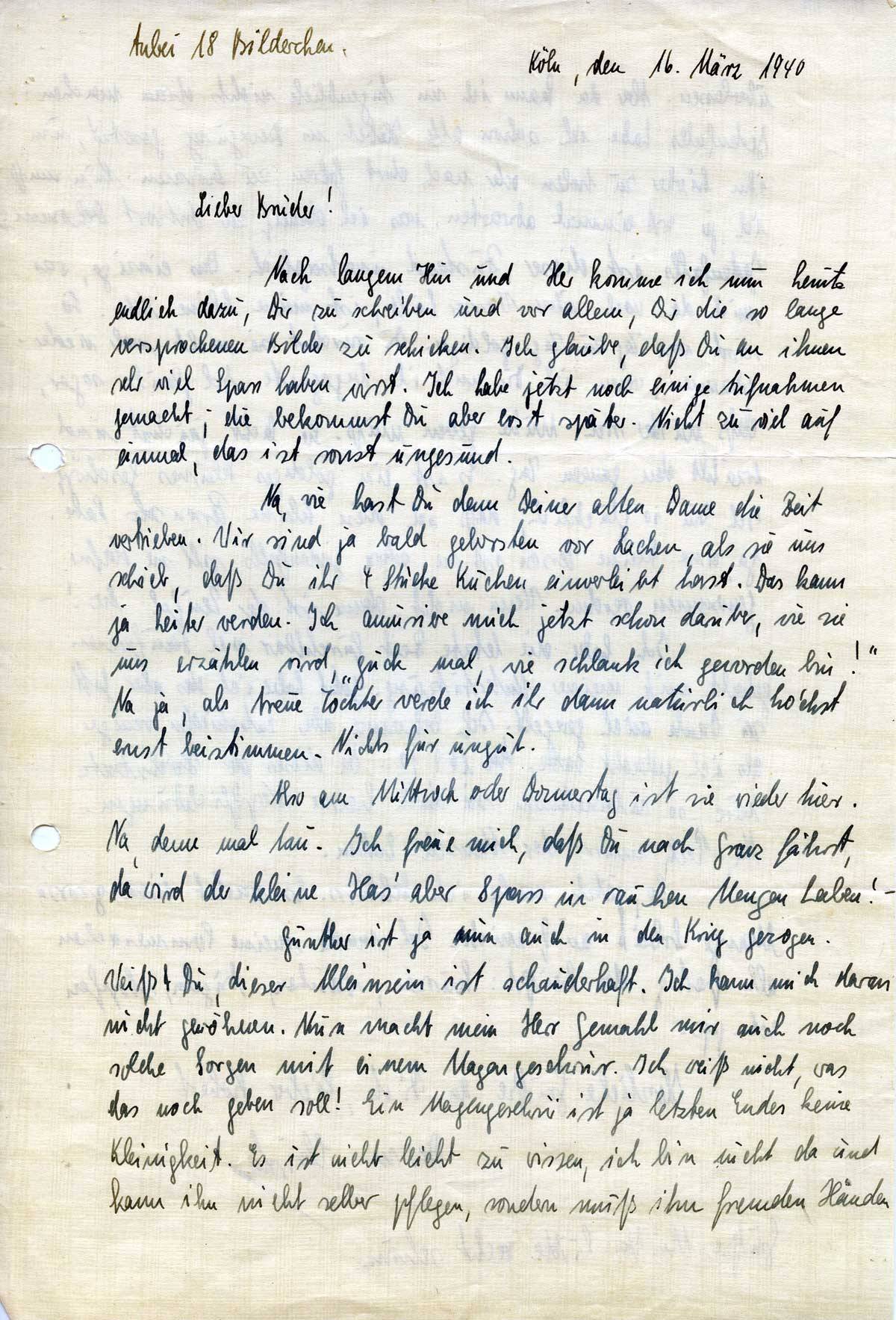 Christa Lehmacher an ihren Bruder Robert Weichelt, 16. März 1940