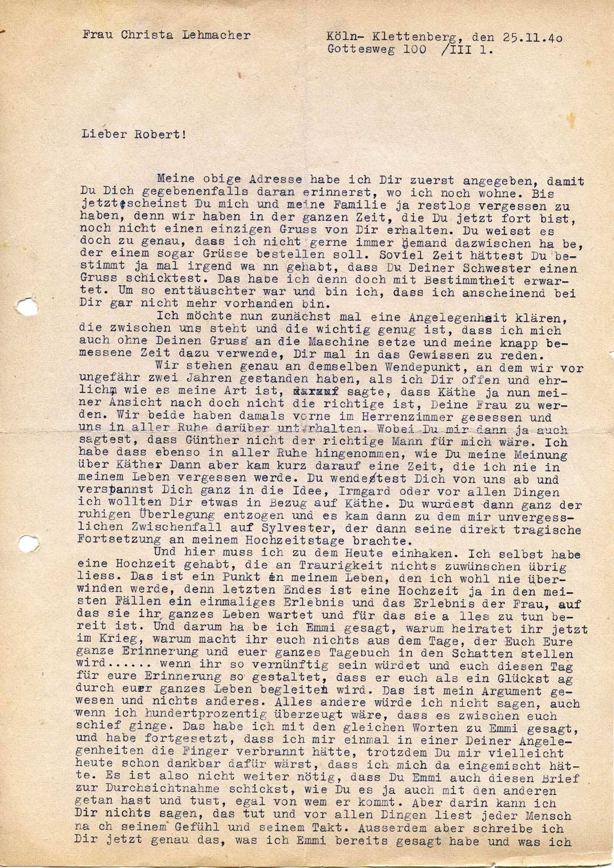 Christa Lehmacher an ihren Bruder Robert Weichelt, 25. November 1940
