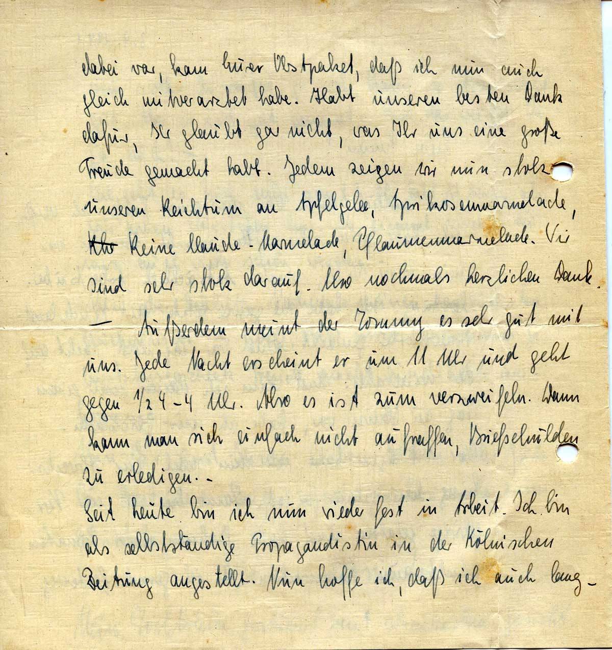 - Außerdem meint der Tommy es sehr gut mit uns. Jede Nacht erscheint er um 11 Uhr und geht gegen ½ 4-4 Uhr. Also es ist zum verzweifeln. Dann kann man sich einfach nicht aufraffen, Briefschulden zu erledigen.