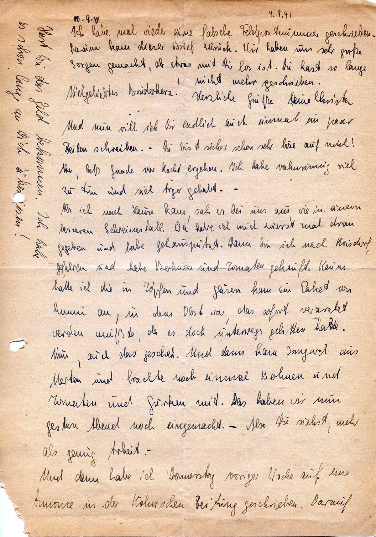 Christa Lehmacher an ihren Bruder Robert Weichelt, 4. September 1941