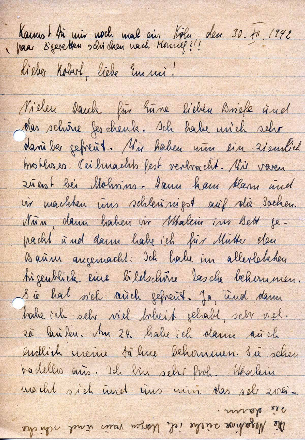 Christa Lehmacher an ihren Bruder Robert Weichelt, 30. Dezember 1942