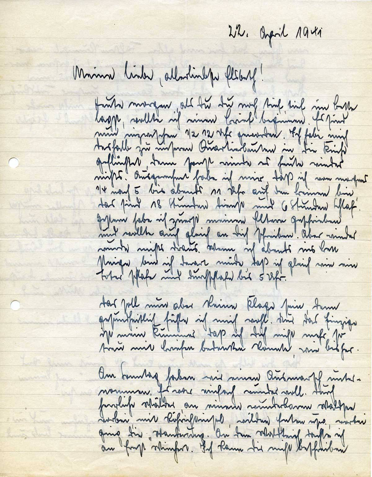 Johannes Ließem an seine Frau Elsbeth, 22. April 1941