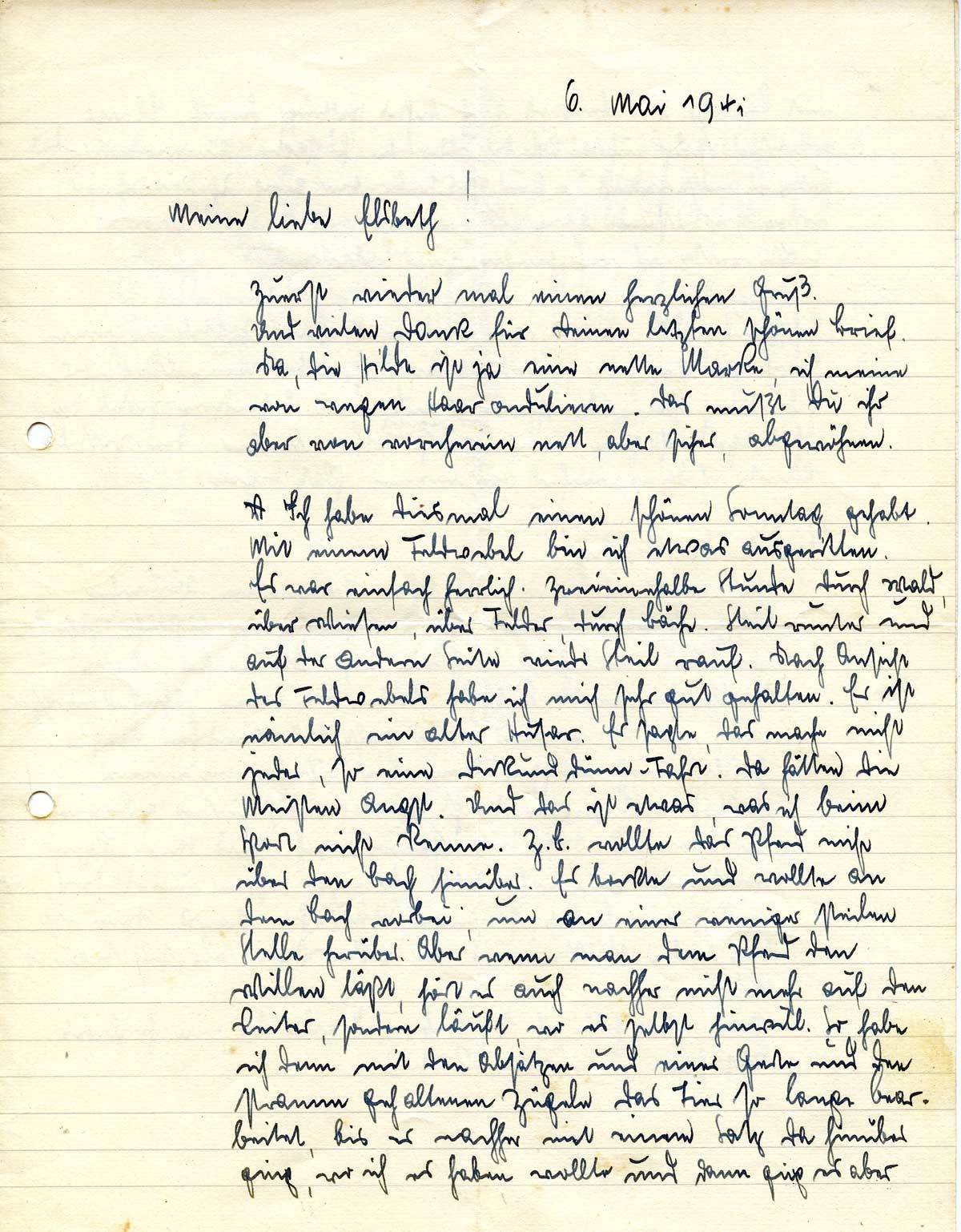 Johannes Ließem an seine Frau Elsbeth, 6. Mai 1941
