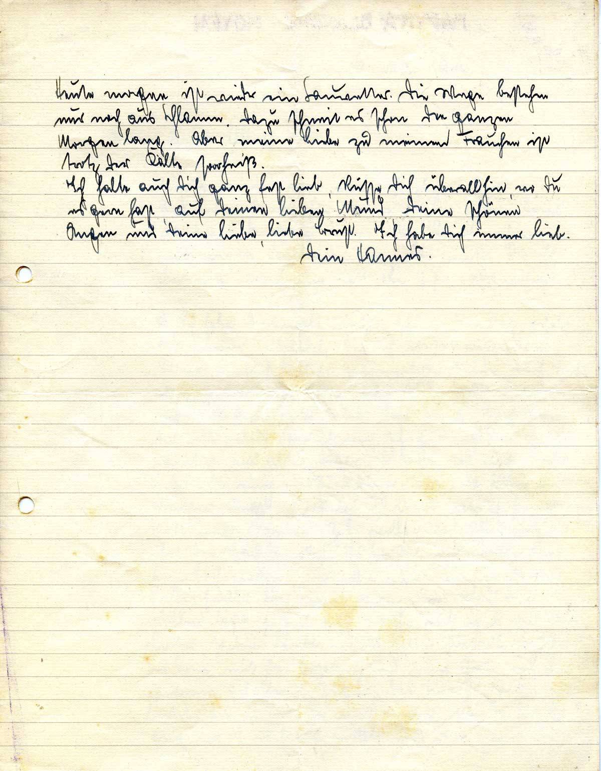 Ich halte auch Dich ganz fest lieb, küsse Dich überall hin, wo Du es gern hast, auf Deinen lieben Mund, Deine schönen Augen und Deine liebe, liebe Brust. Ich habe Dich immer lieb.