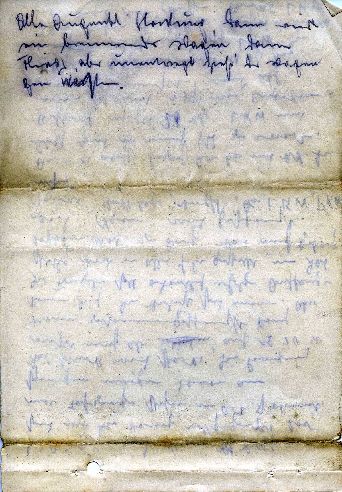 Der Druck wird stärker, die Bewegung reißt nicht ab. auf 18 20 30 Mann zusammengeschrumpft. Komp. kommt durch. Die Verluste sind enorm. Aber die Freigabe soll ordentlich erfolgen. Auffangstellg. wird in aller Eile gestellt, um das kostbare Mat. zu berg. Was nicht geborg.werd. kann wird gesprengt. Tanks Bekl.-lager, Verpfl. LKW, PKW usw.