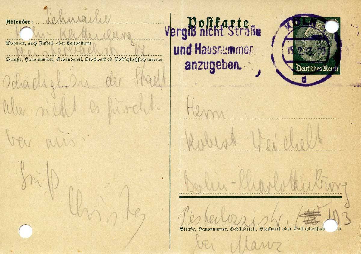 Christa Lehmacher an ihren Bruder Robert Weichelt und dessen Frau, 15. Februar 1943
