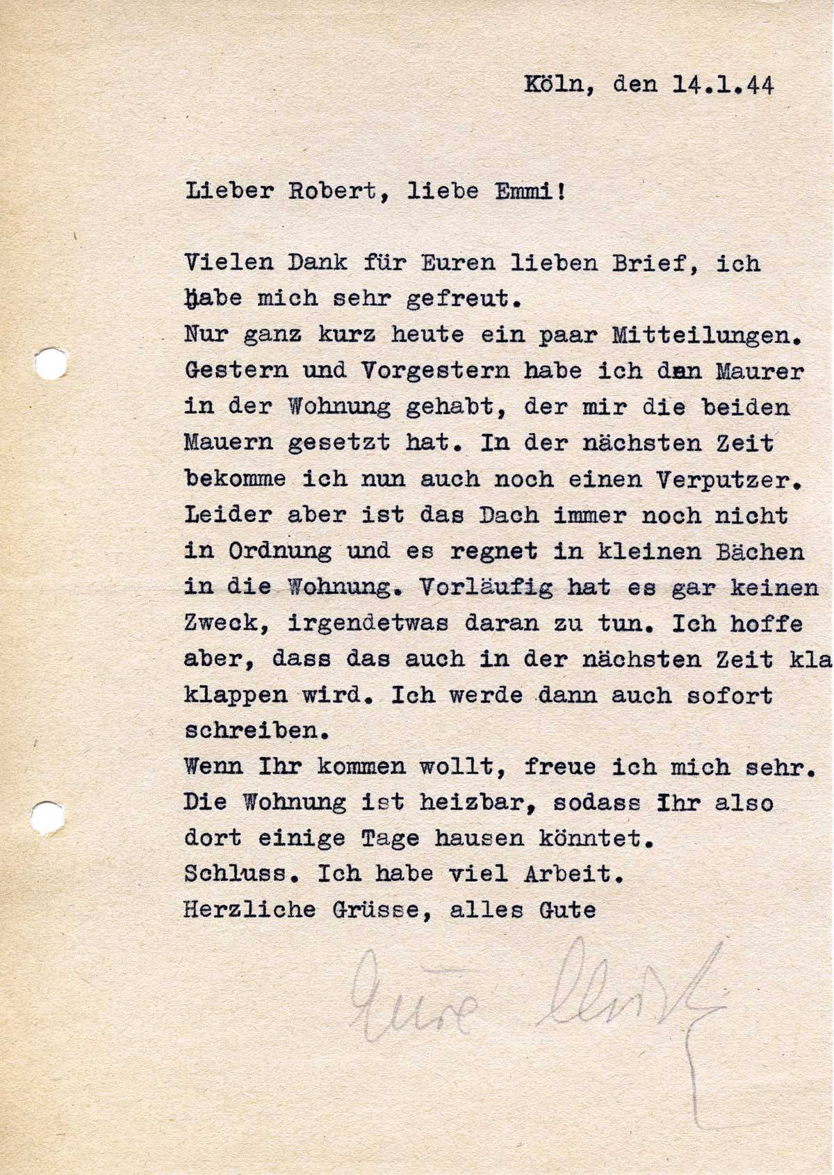 Christa Lehmacher an ihren Bruder Robert Weichelt und dessen Frau, 14. Januar 1944