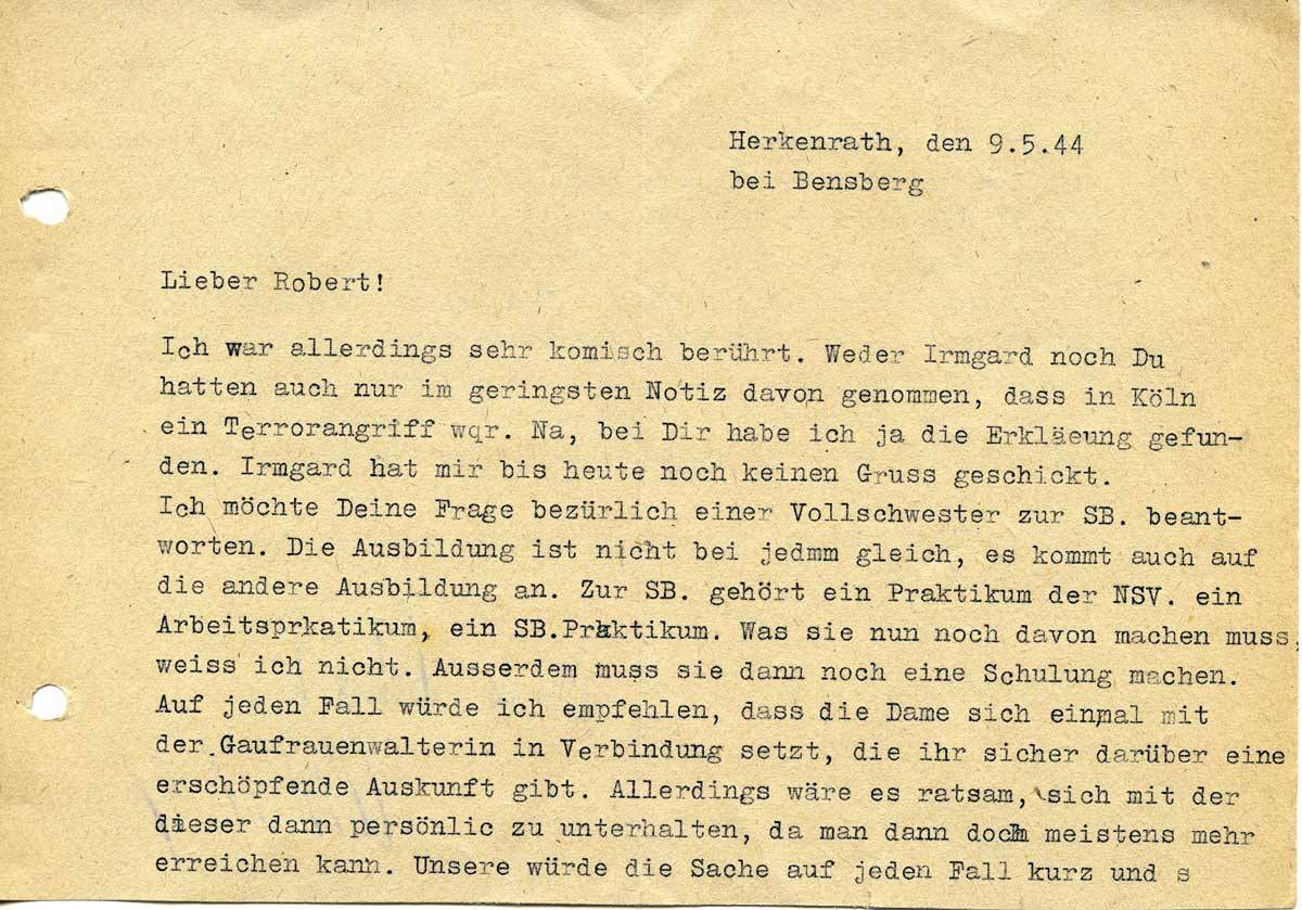 Christa Lehmacher an ihren Bruder Robert Weichelt, 9. Mai 1944