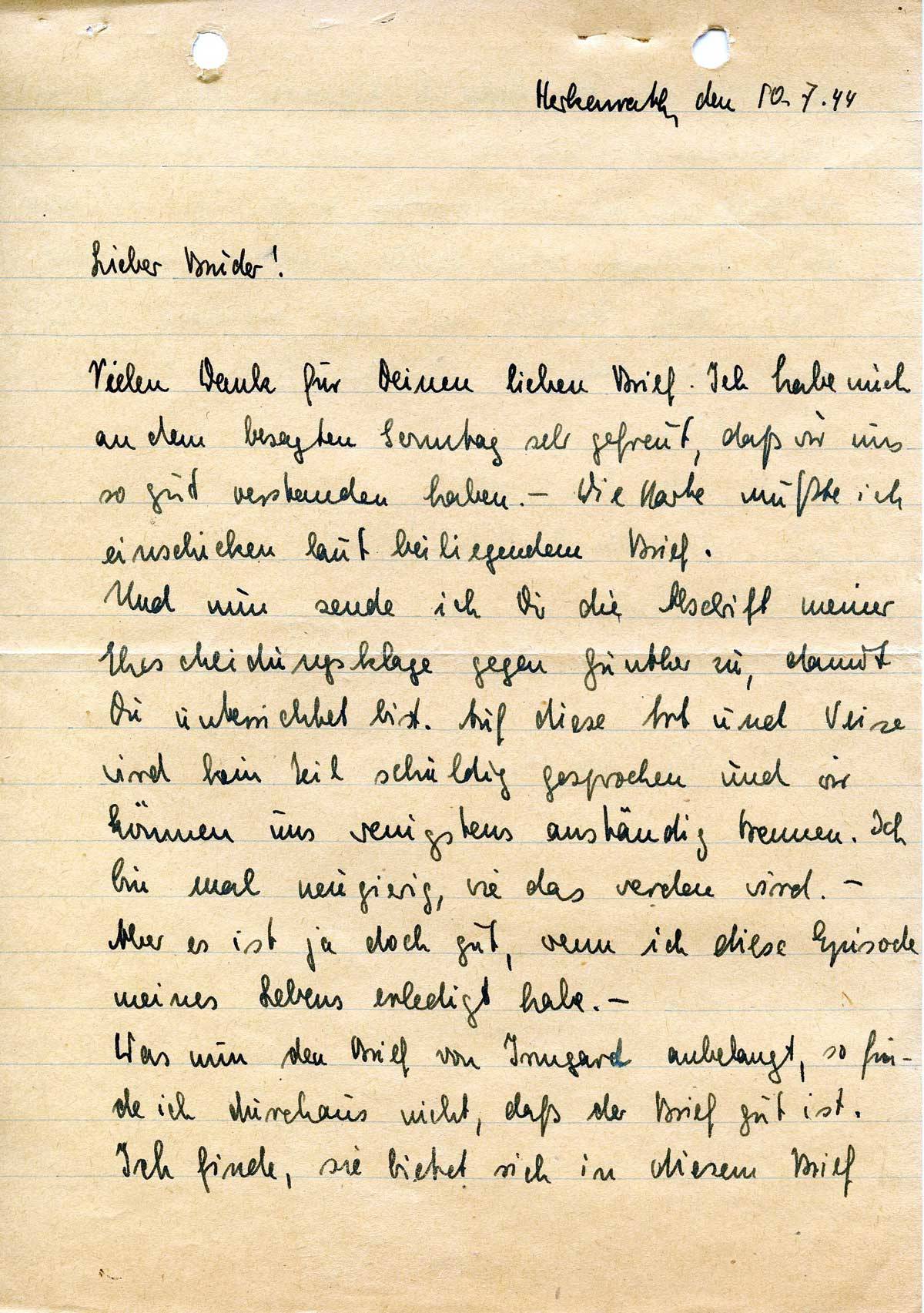 Christa Lehmacher an ihren Bruder Robert Weichelt, 10. Juli 1944