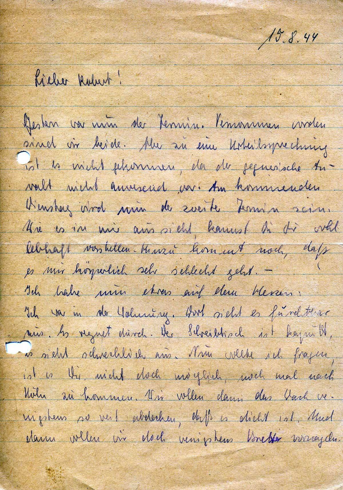 Christa Lehmacher an ihren Bruder Robert Weichelt, 15. August 1944