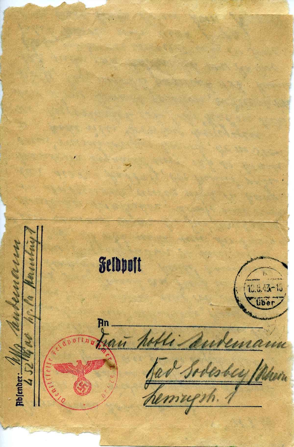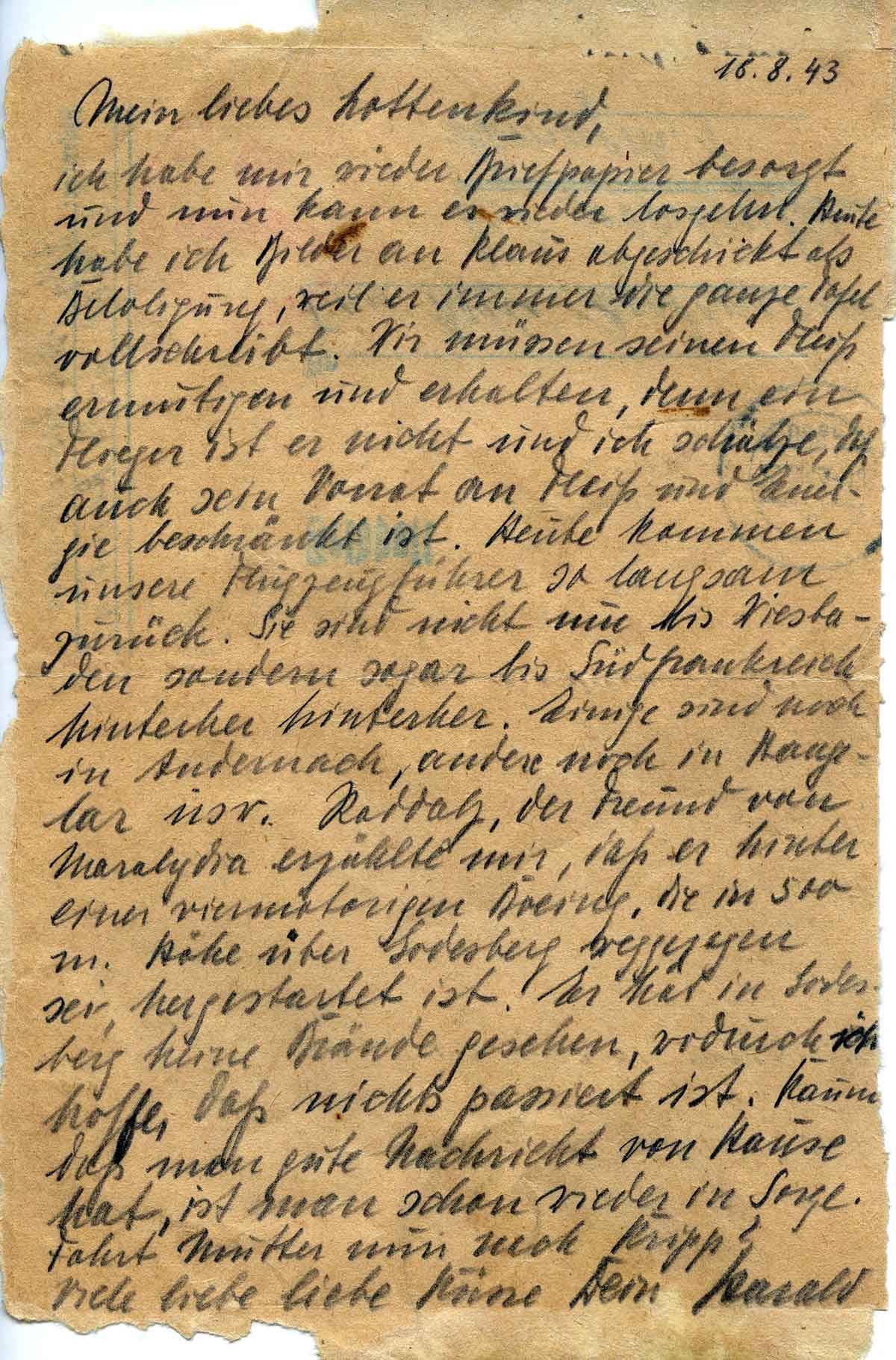 Harald Endemann an seine Frau Charlotte, 18. August 1943