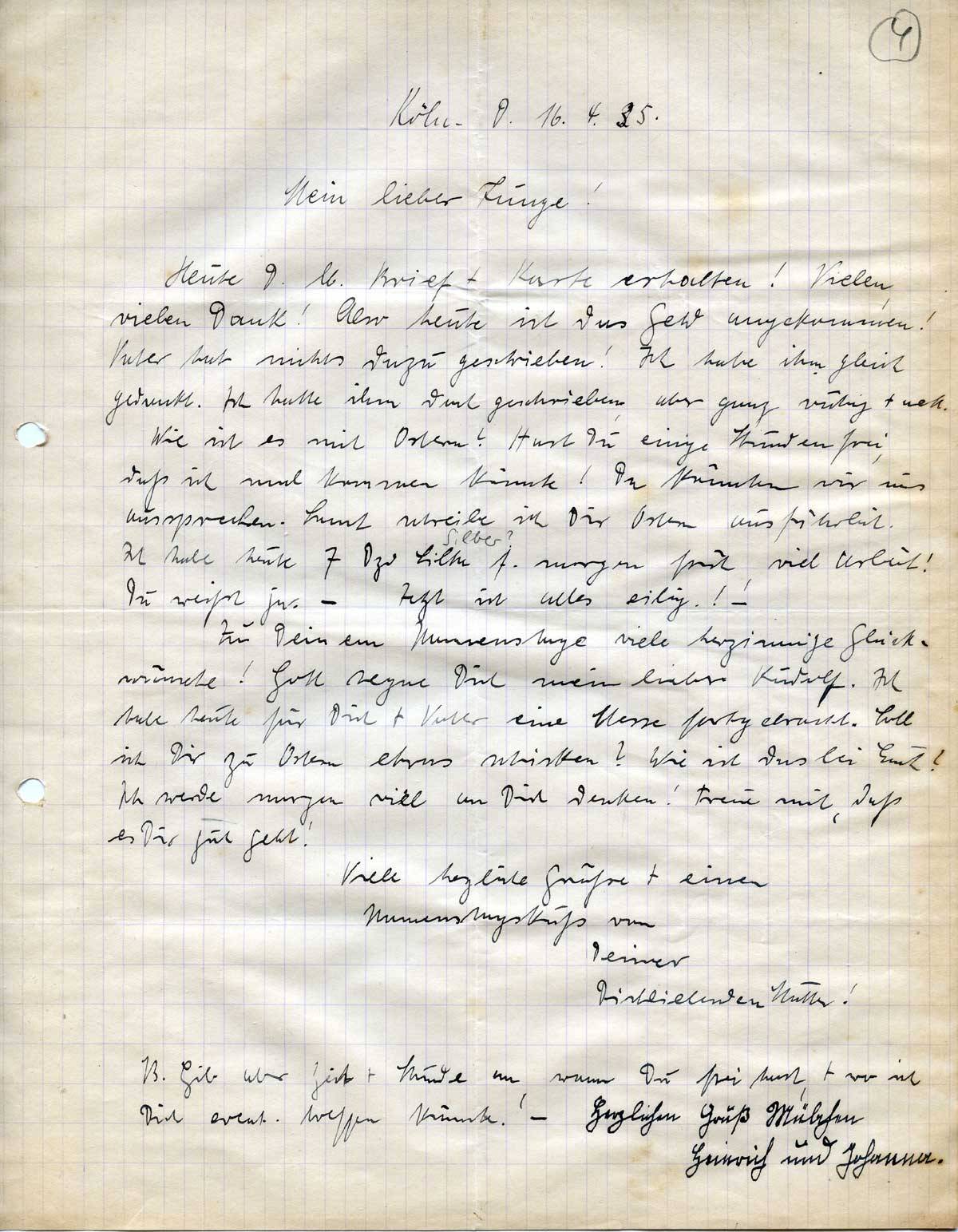 Anna Schmitz an ihren Sohn Rudolf, 16. April 1935