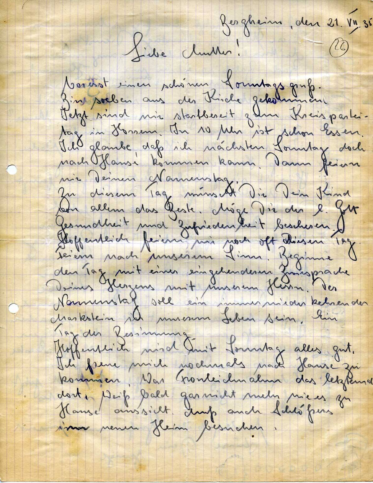 Rudolf Schmitz an Mutter Anna, 21. Juli 1935