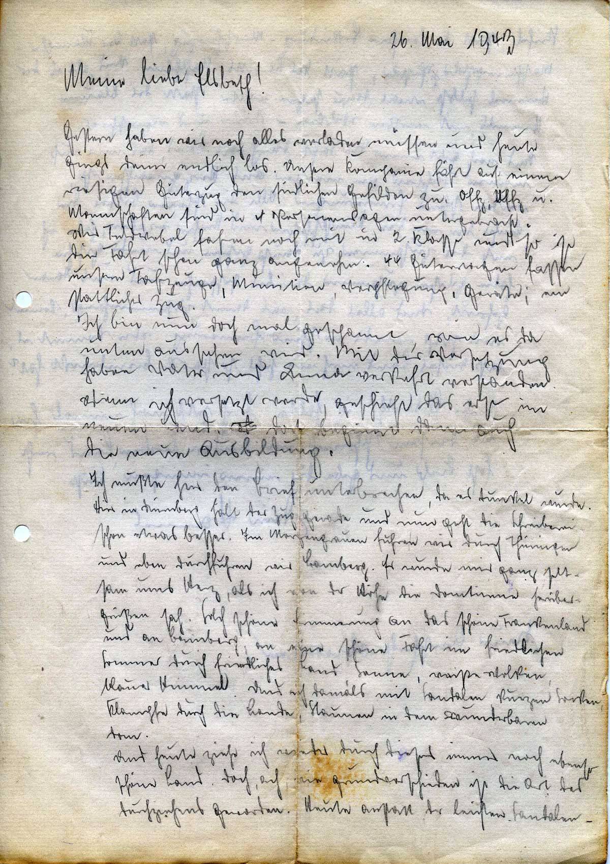 Johannes Ließem an seine Frau Elsbeth, 26. Mai 1943