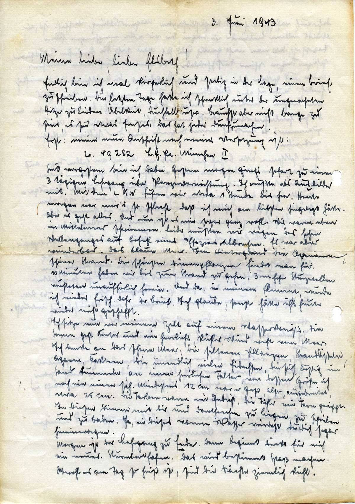 Johannes Ließem an seine Frau Elsbeth, 3. Juni 1943