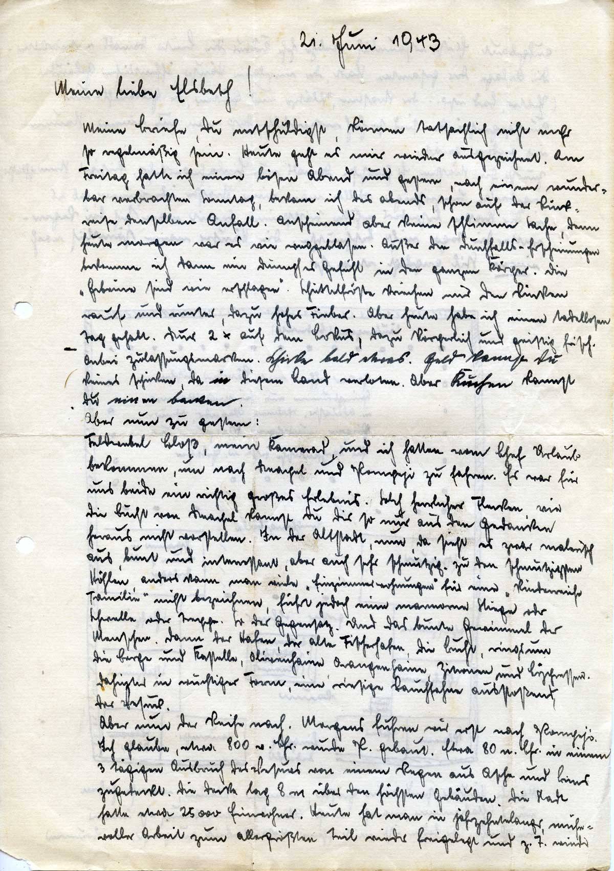 Johannes Ließem an seine Frau Elsbeth, 21. Juni 1943