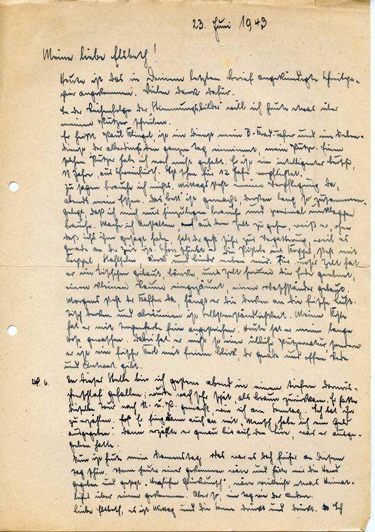 Johannes Ließem an seine Frau Elsbeth, 23. Juni 1943